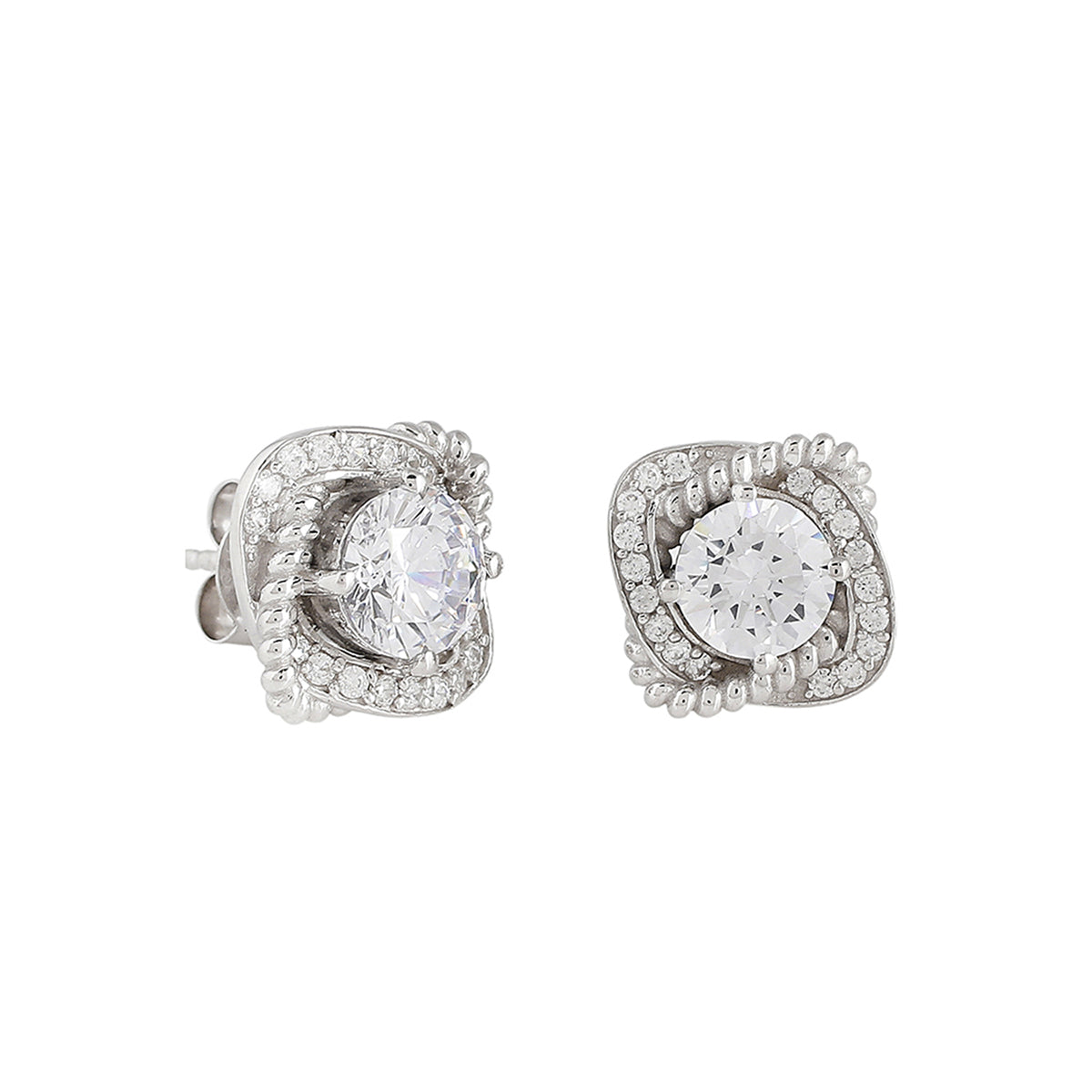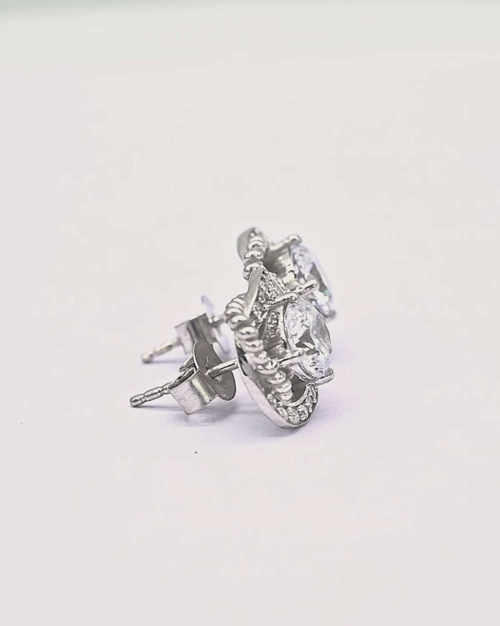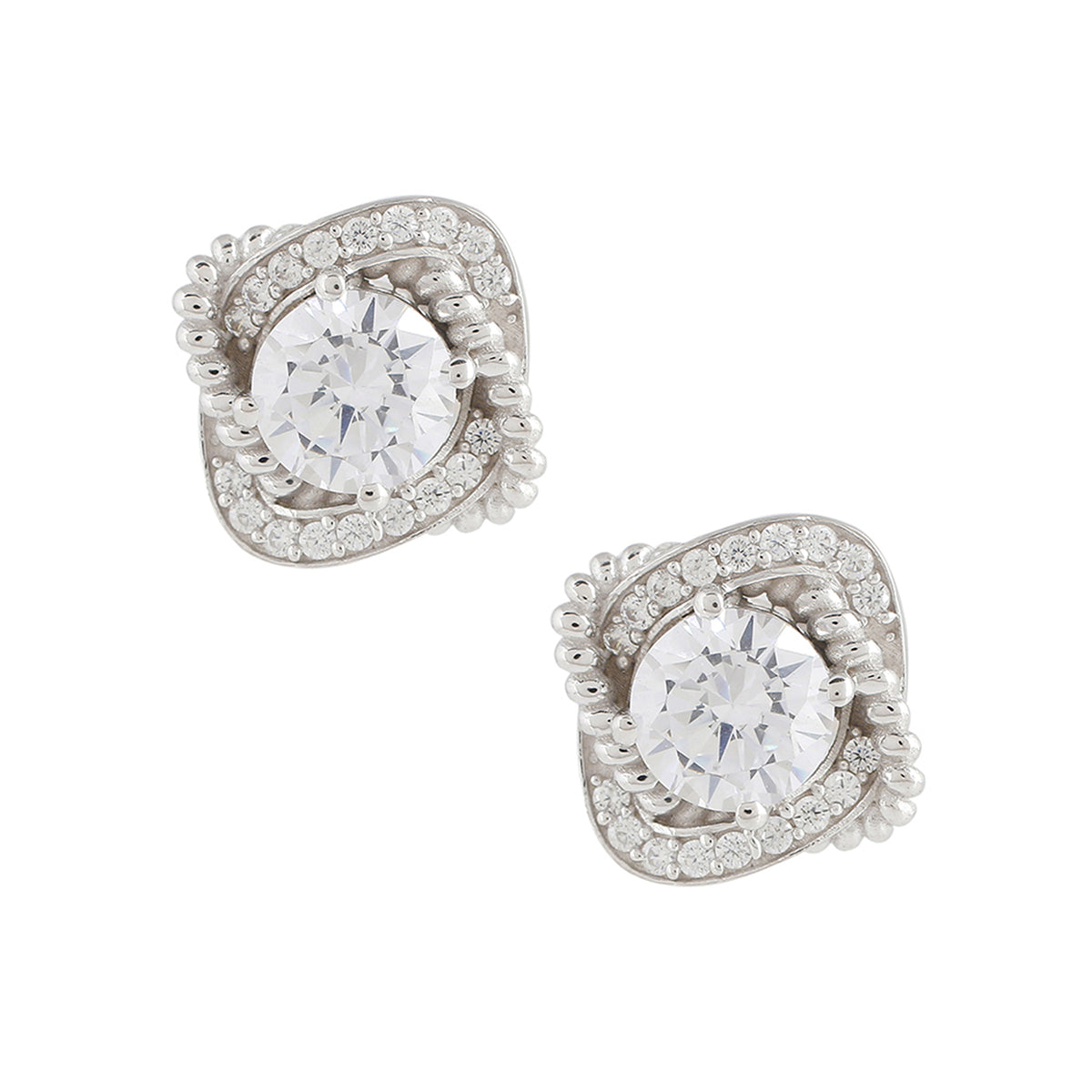 925 Sterling Silver CZ Enchanting Shell Shaped Stone Stud Earrings