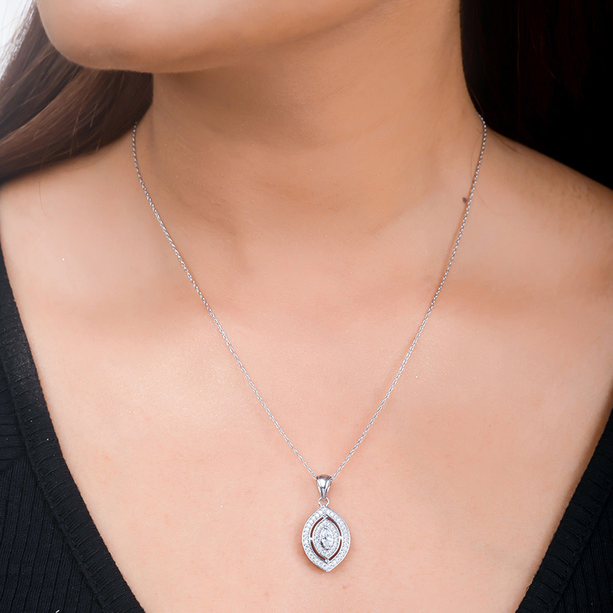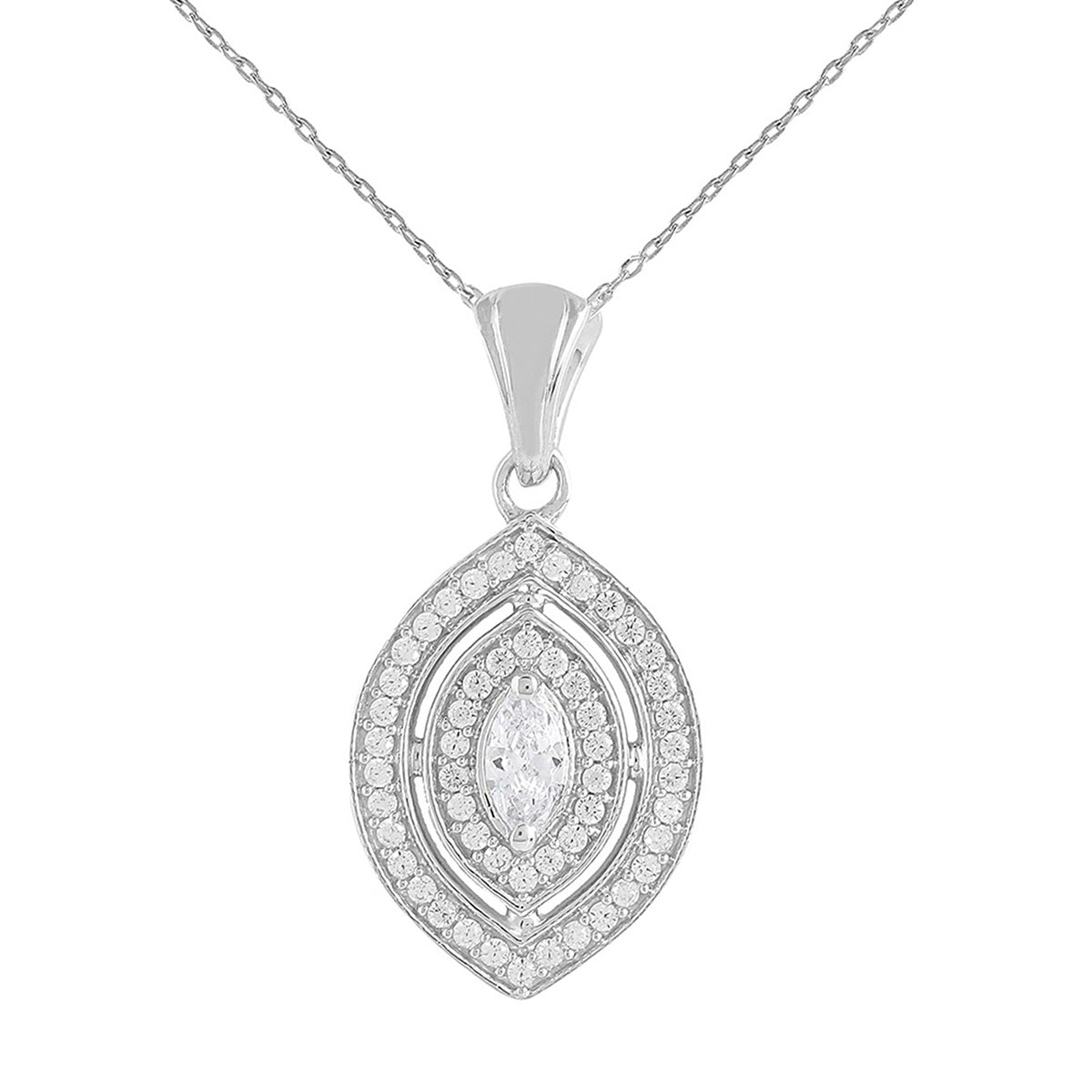 925 Sterling Silver CZ Marquise Pendant with Chain