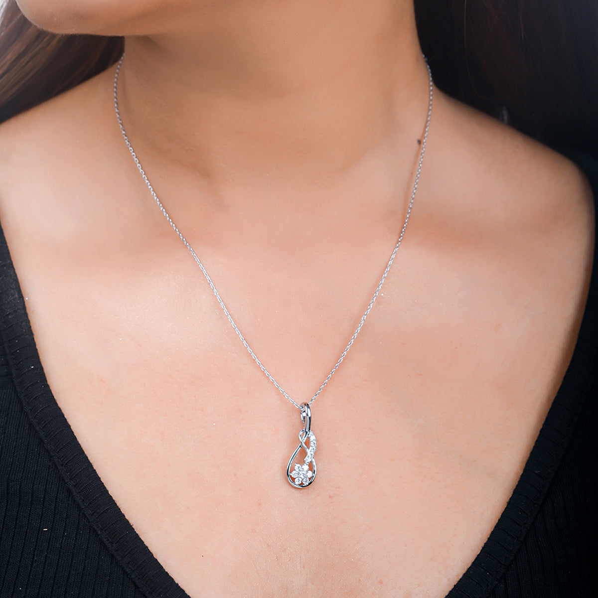 925 Sterling Silver CZ Infinity Shaped Pendant with Chain