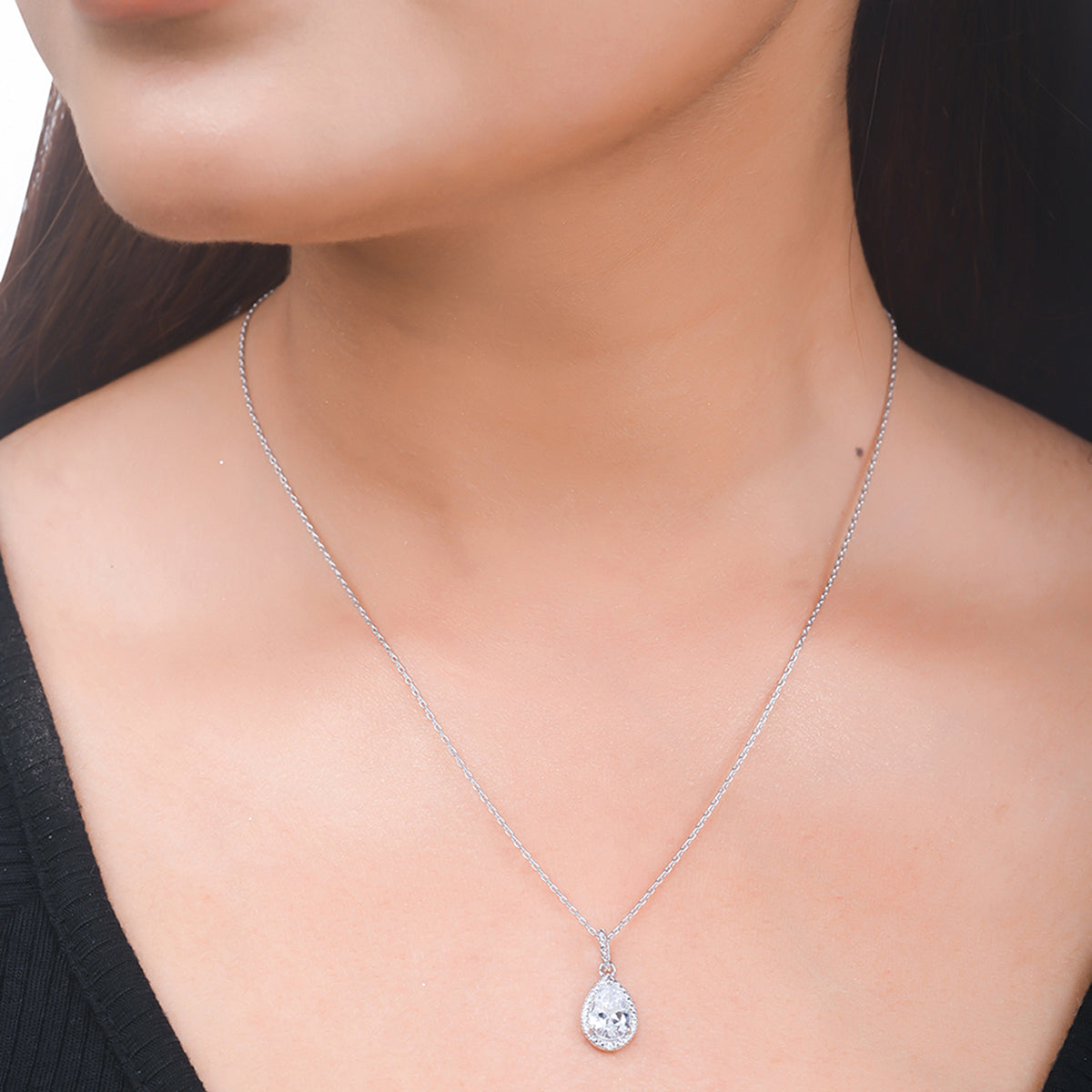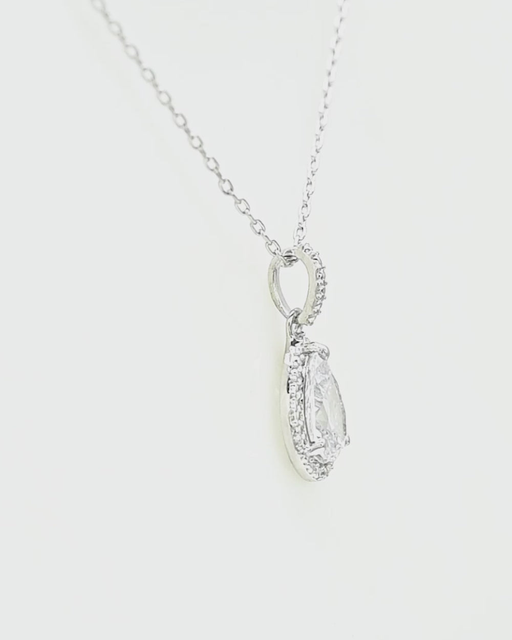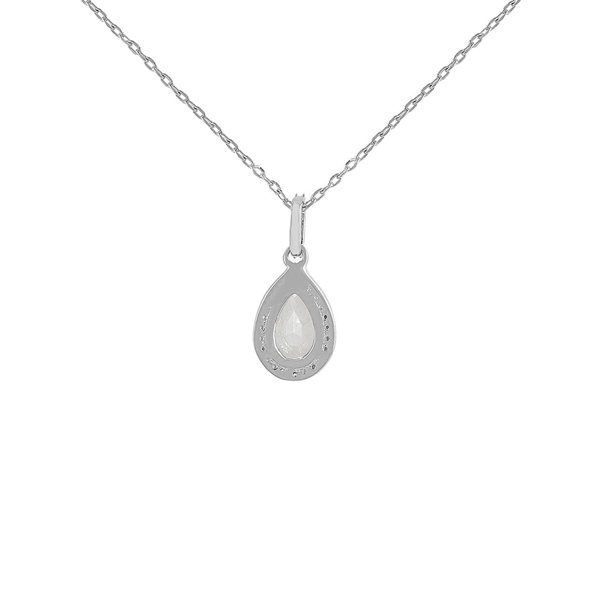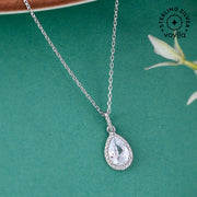 925 Sterling Silver CZ Pearl Shaped Pendant with Chain