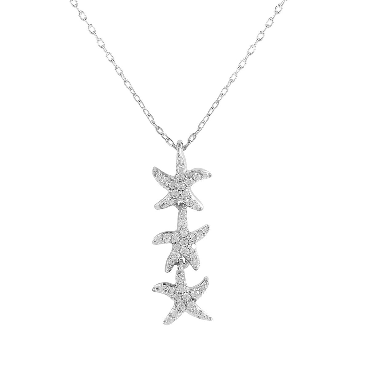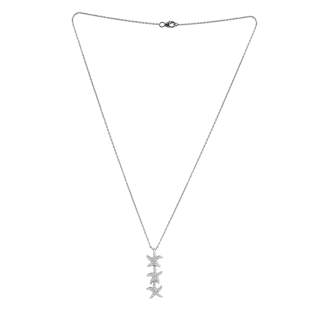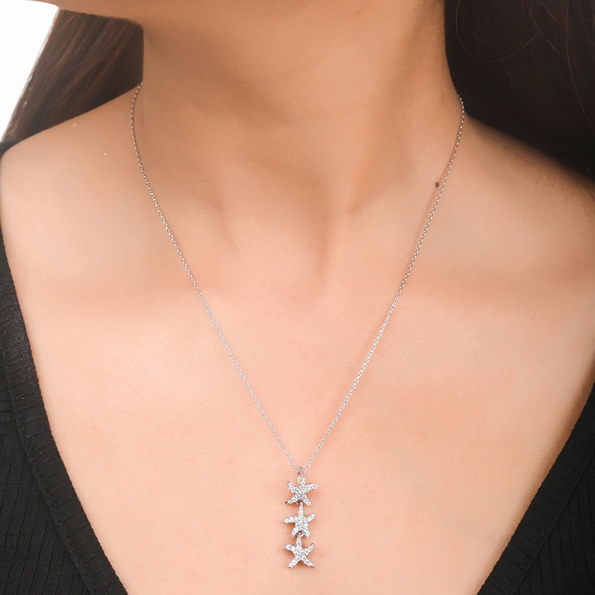925 Sterling Silver CZ Three Stars Pendant with Chain