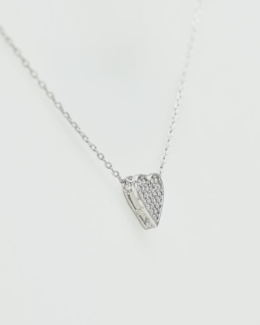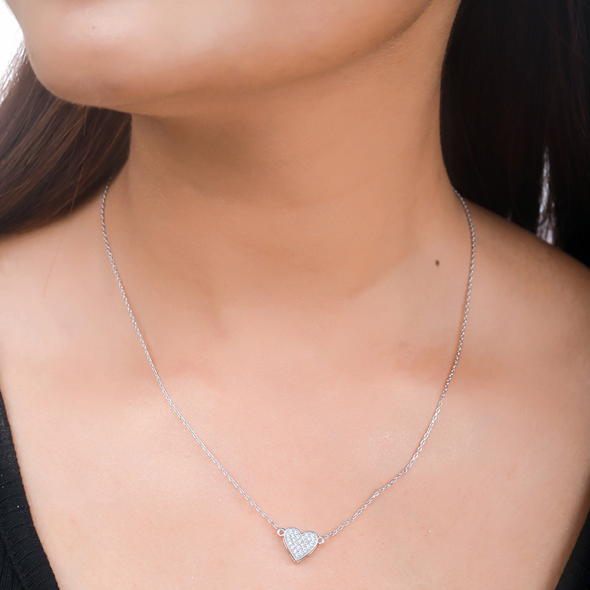 925 Sterling Silver CZ Tiny Heart Pendant with Chain