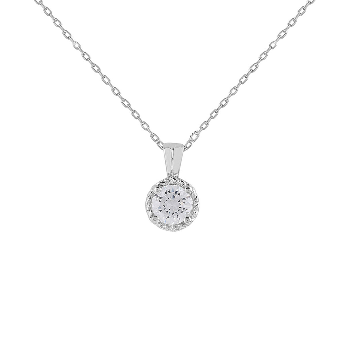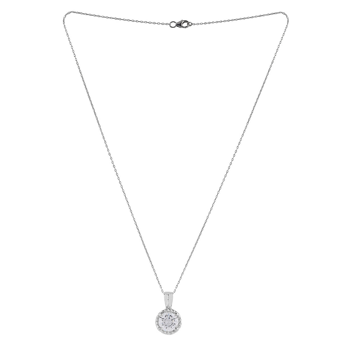 925 Sterling Silver CZ with Beautiful Single Cubic Stone Pendant with Chain