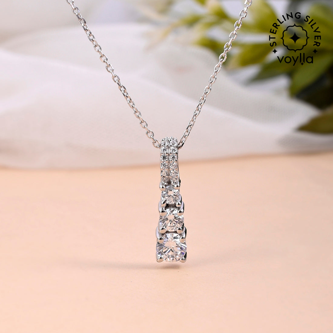 925 Sterling Silver CZ Aesthetic Cone Shaped Pendant with Chain