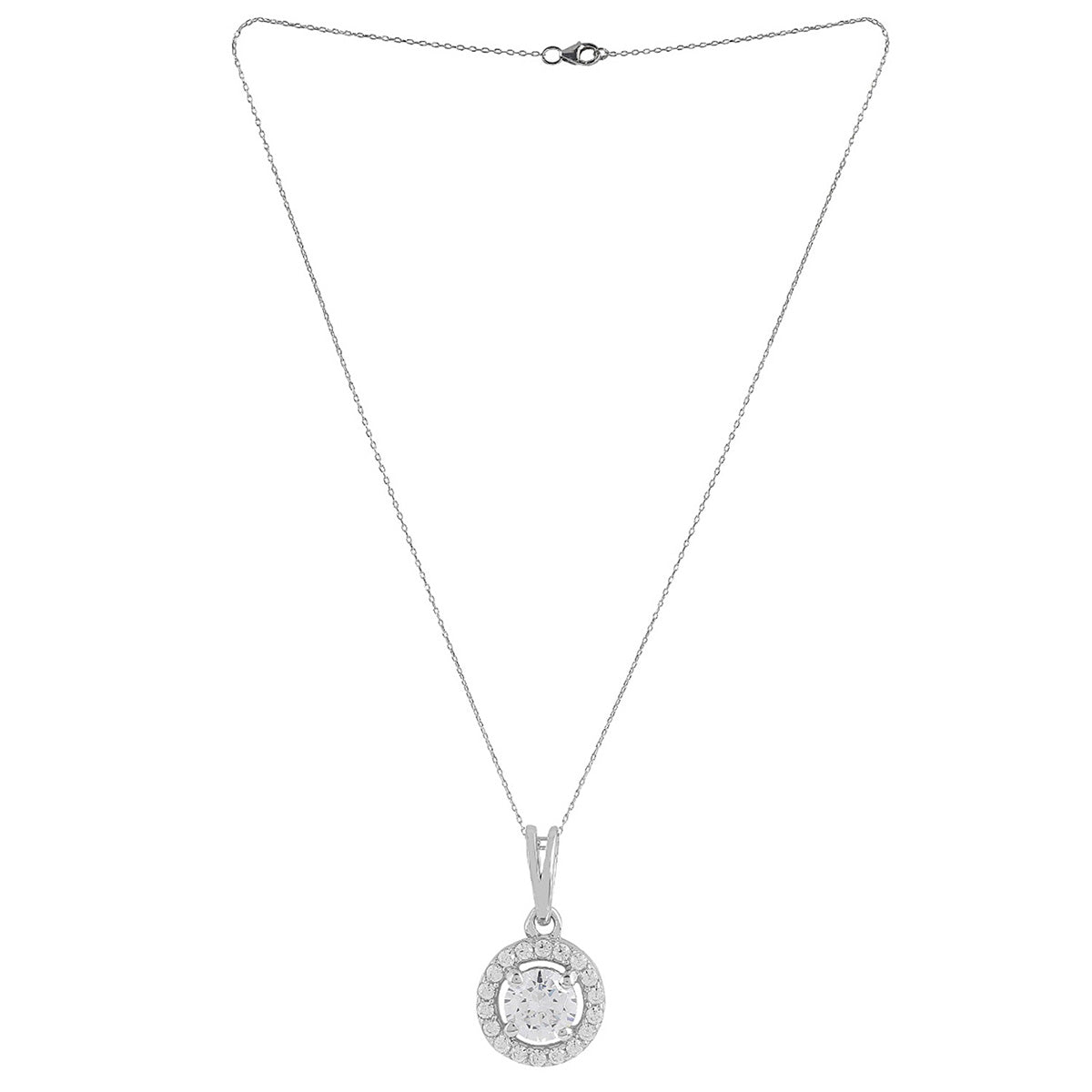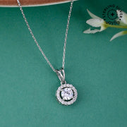 925 Sterling Silver CZ Round Shaped Pendant with Chain