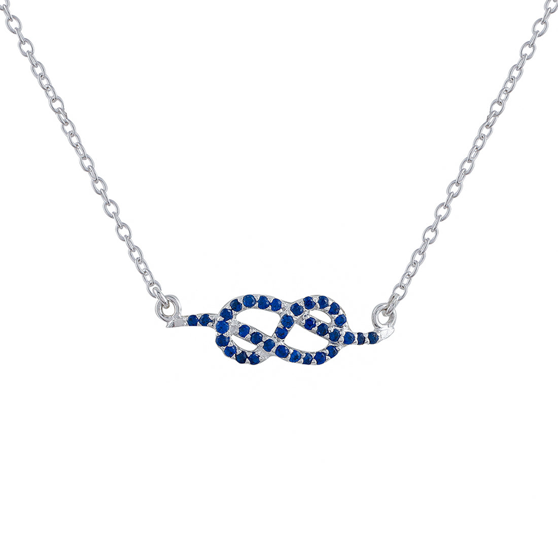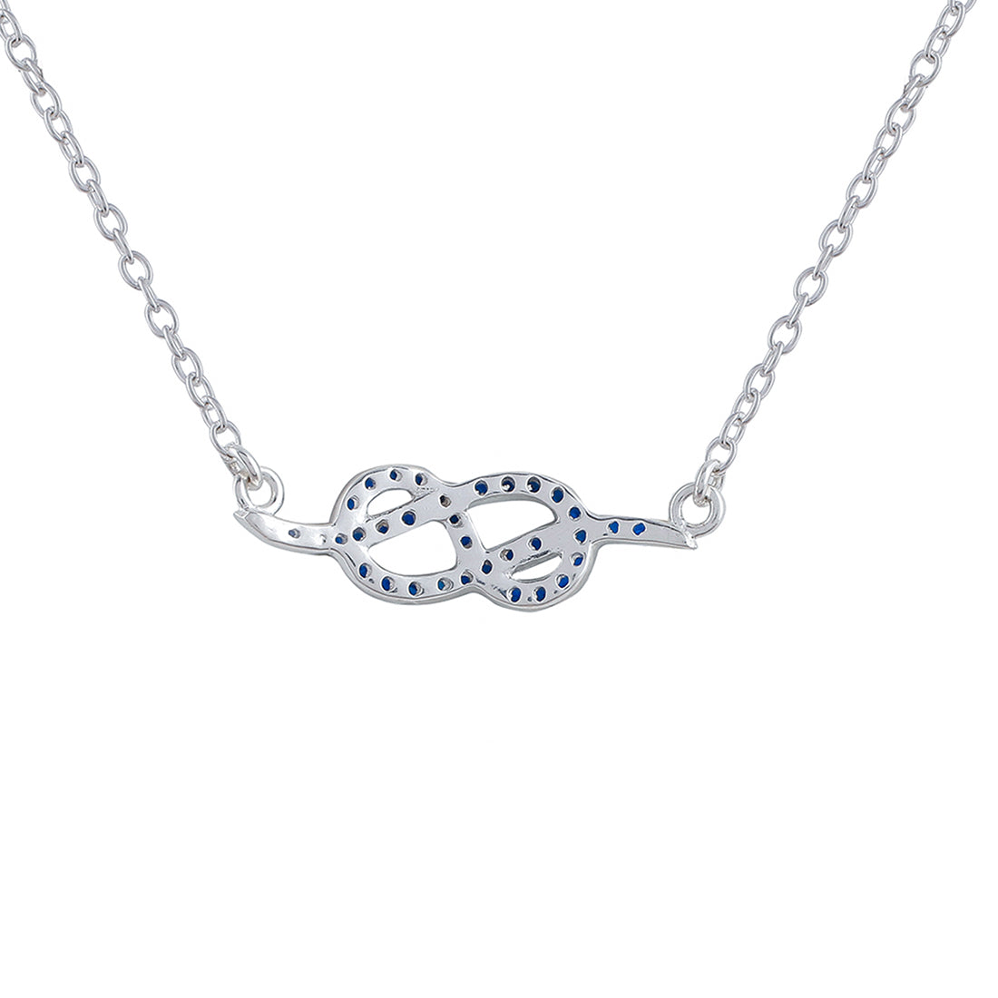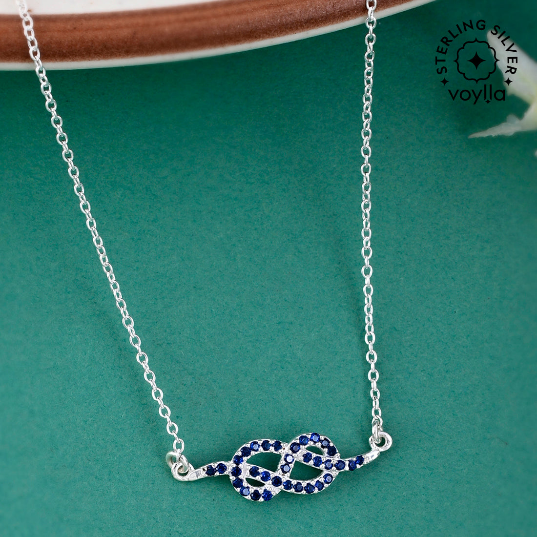 925 Sterling Silver Blue CZ Gem Studded Small Infinity Necklace