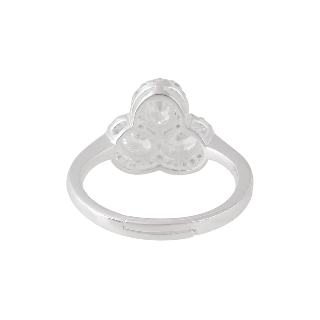 An alluring finger ring for women, made from 925 sterling silver. Embellished with white CZ gems, the white rhodium plated ring is perfect for everyday wear.