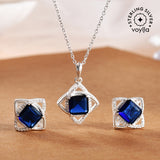 925 Sterling Silver Blue Square Cut CZ Pendant Set