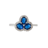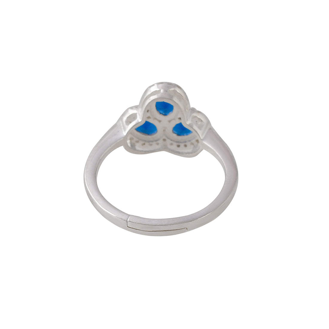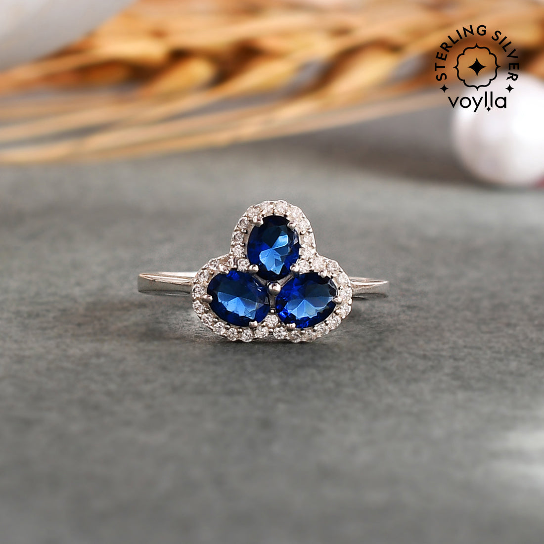 Blue zirconia gemstones adorned 925 sterling silver ring with white rhodium plating. The ring is versatile and comfortable.