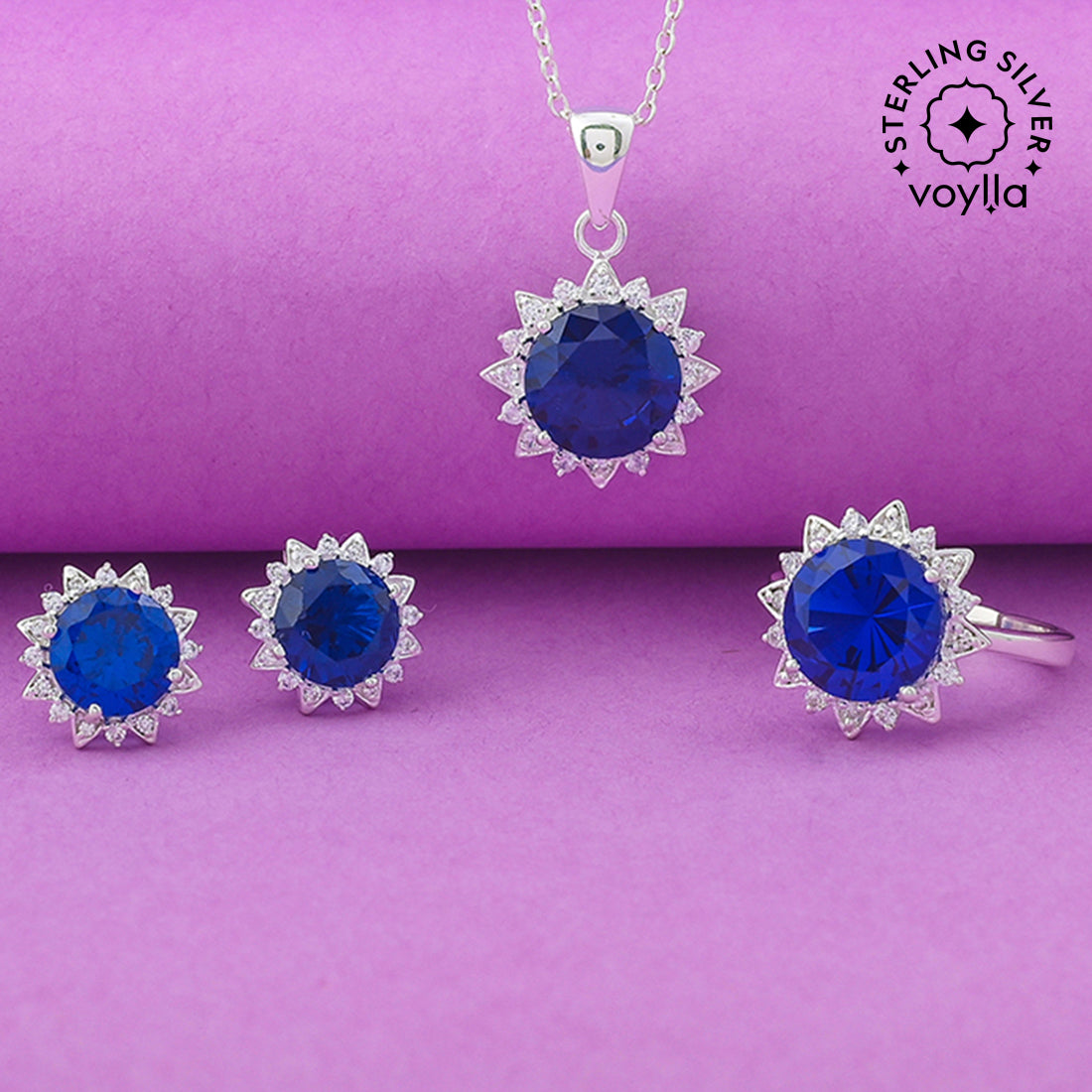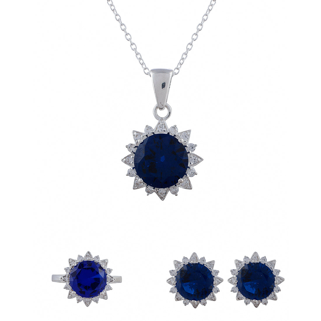925 Sterling Silver Box Set With Floral Blue CZ gems For Women