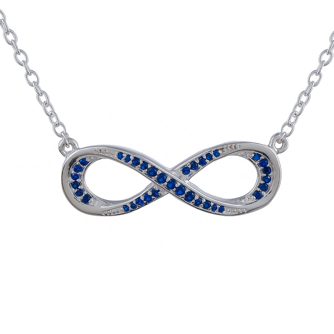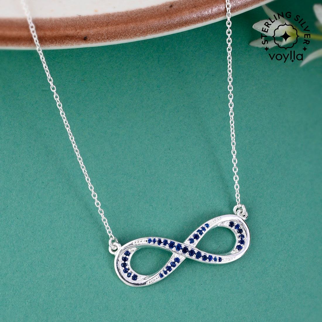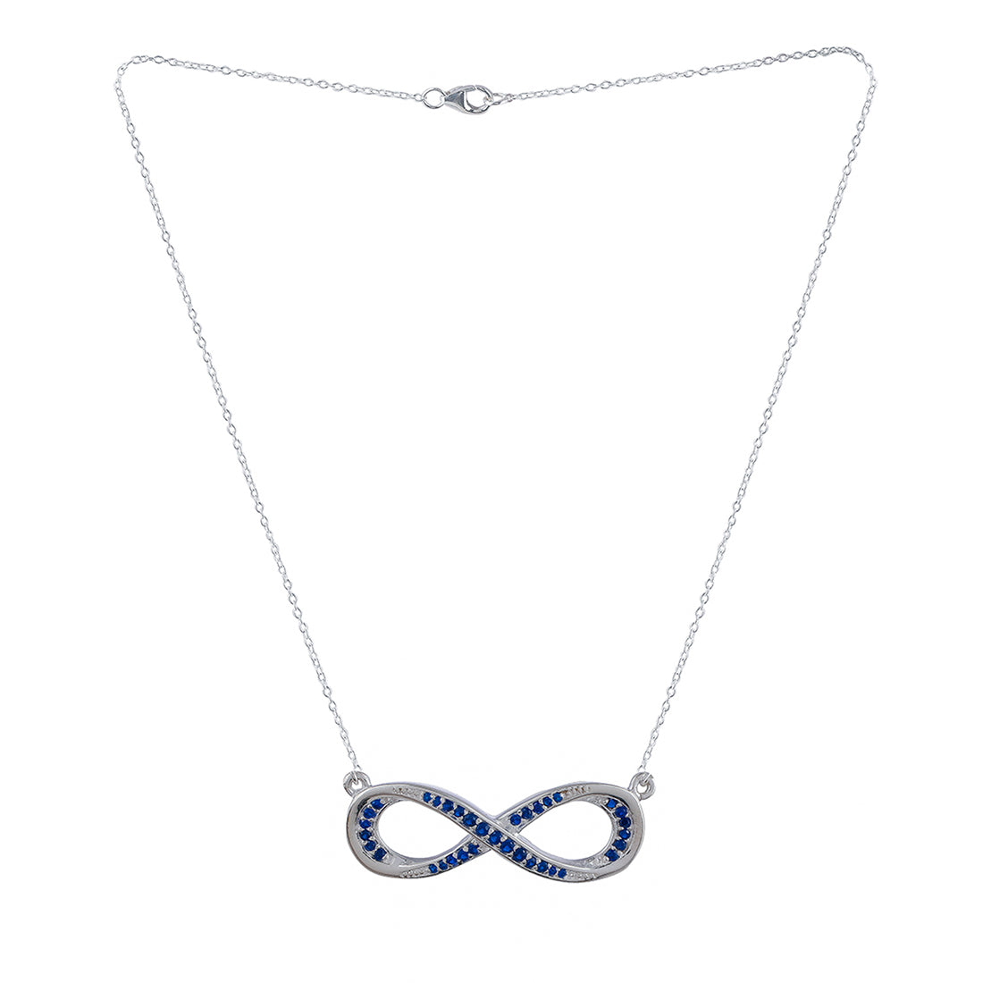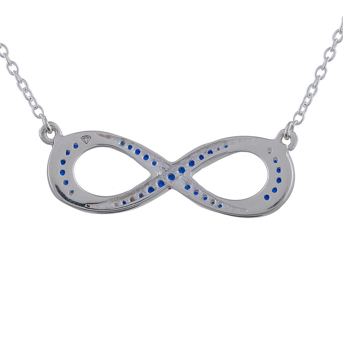 925 Sterling Silver CZ Blue Gem Studded Infinity Necklace