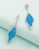 A classy pair of earrings from the house of Voylla for you to look more beautiful every time you wear them. The sky blue color stone dangled with American Diamond embellishment in sterling silver piece makes it precious.
