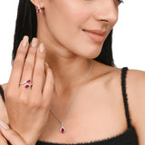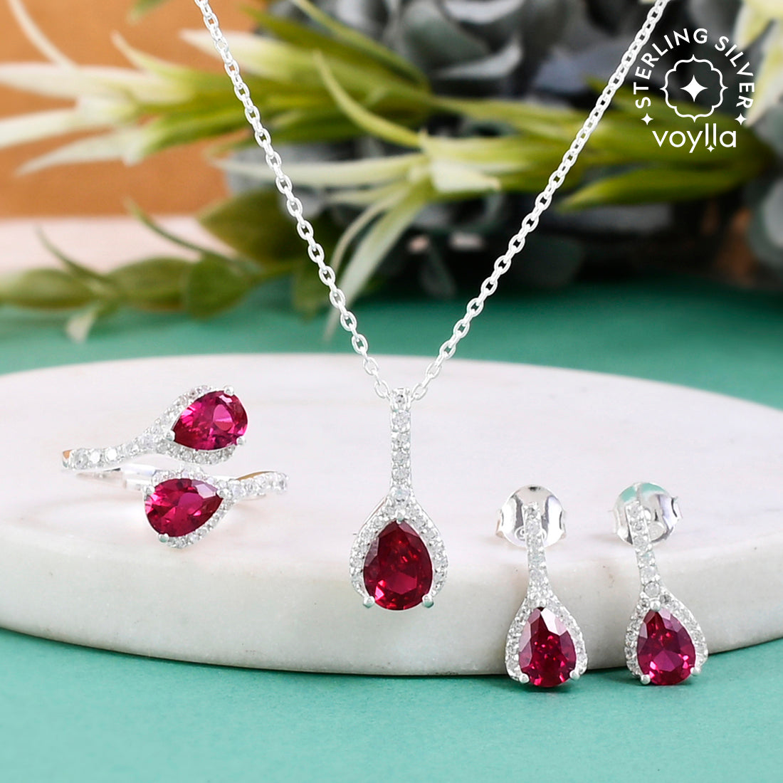Gift your lady this beautiful jewelry box set from the house of Voylla. This box contains pendant with chain, matching pair of earrings and a beautiful ring that are embellished with CZ sparkling stones. It is sure that your beloved will be happy by seeing this set. Light in weight and also you can also save a lot of money as it's at an affordable price. Best for the gifting purpose.