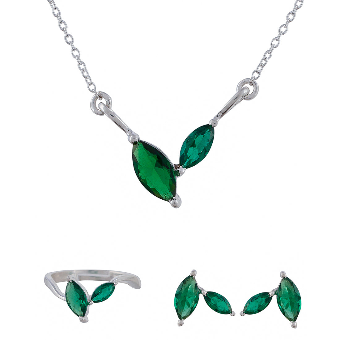 925 Sterling Silver Designer Box Set with Green CZ