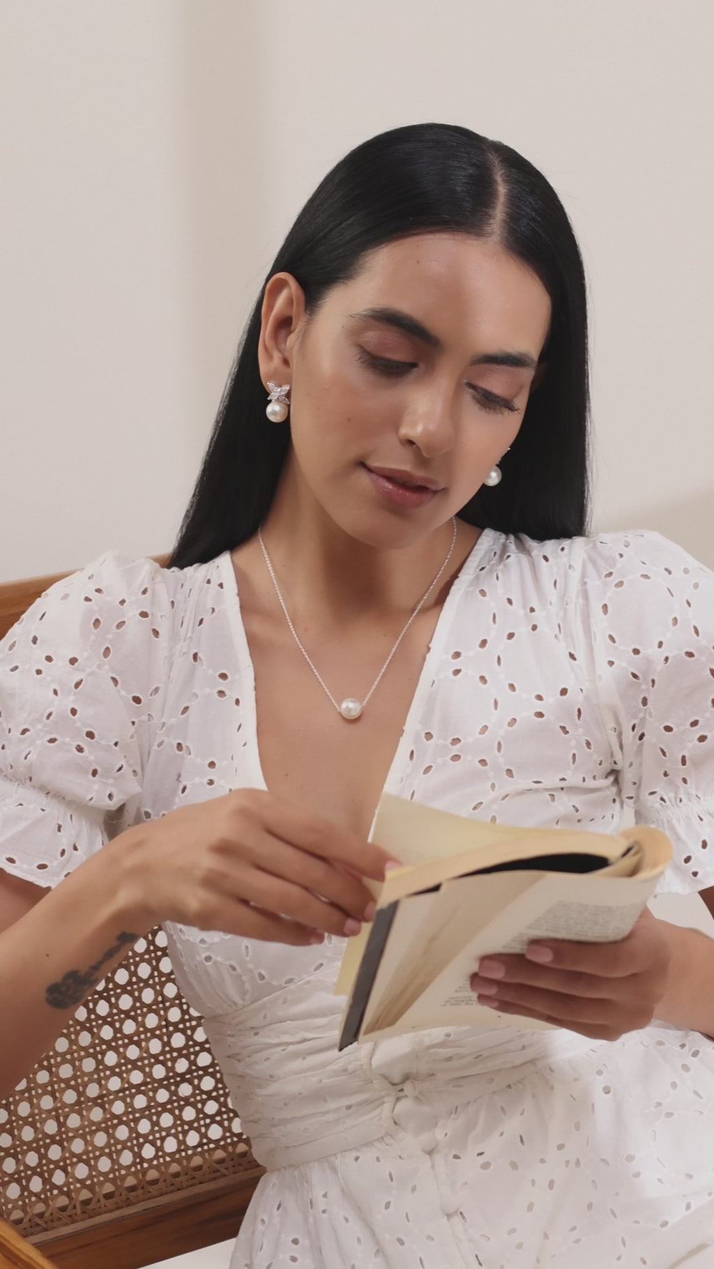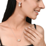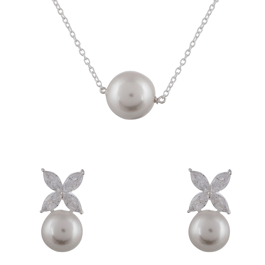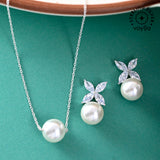 925 Sterling Silver Floral Necklace Set with Pearl Drops