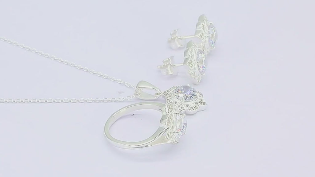 925 Sterling Silver Gemstones Adorned Jewelry Box Set