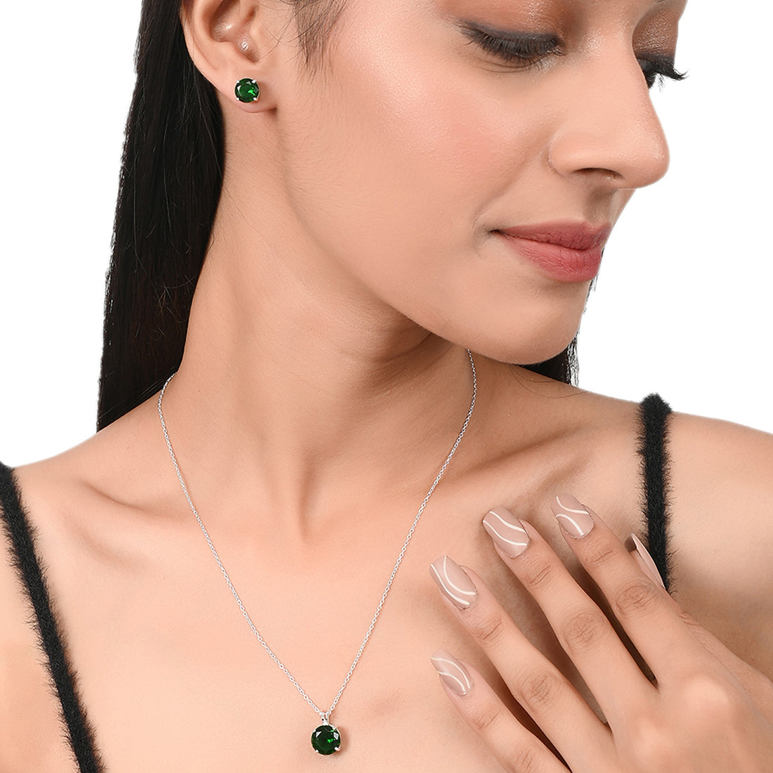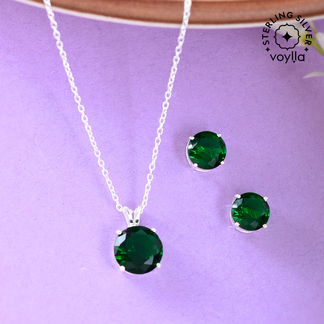 925 Sterling Silver Necklace Set Studded With Green Stones