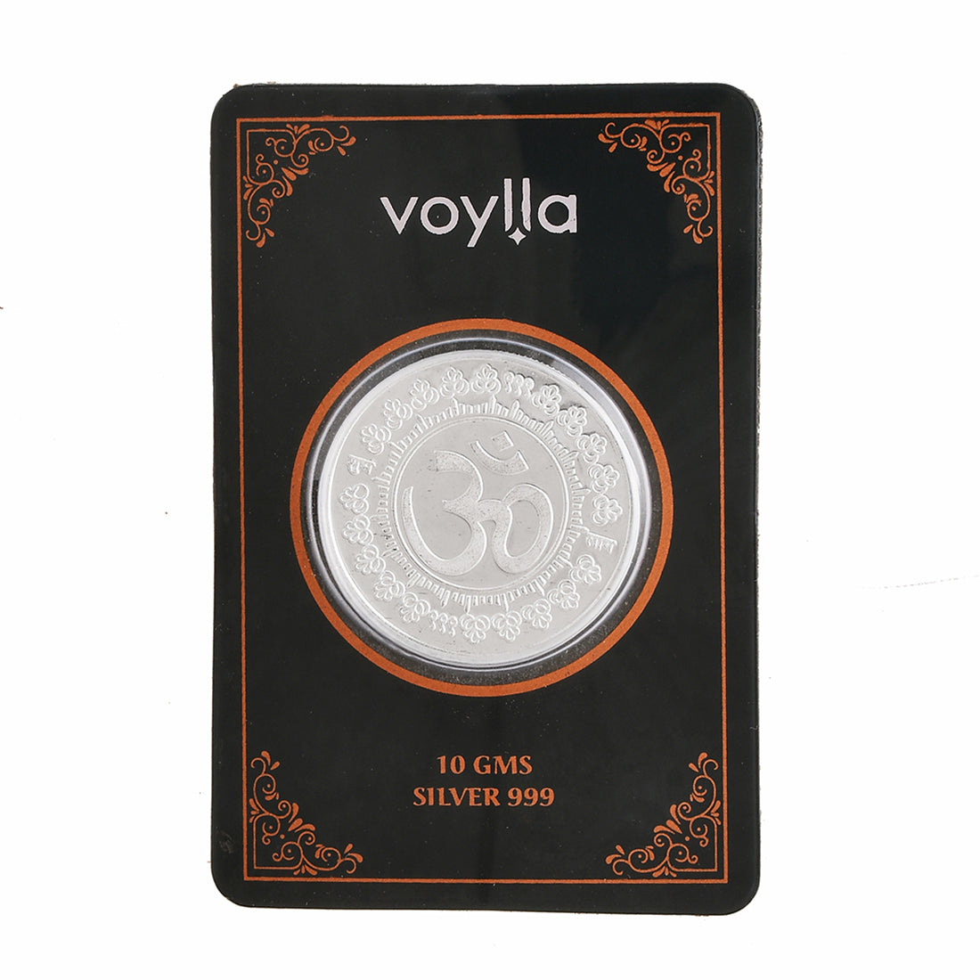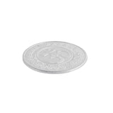 OM 10 grams 999 sterling silver coin. White rhodium plated for added charm.