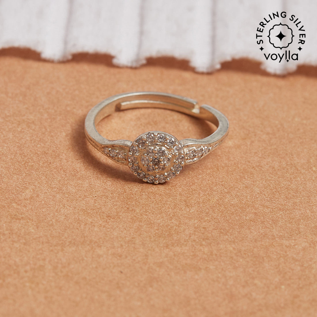 925 Sterling Silver Oval Stone Centered CZ Adjustable Ring