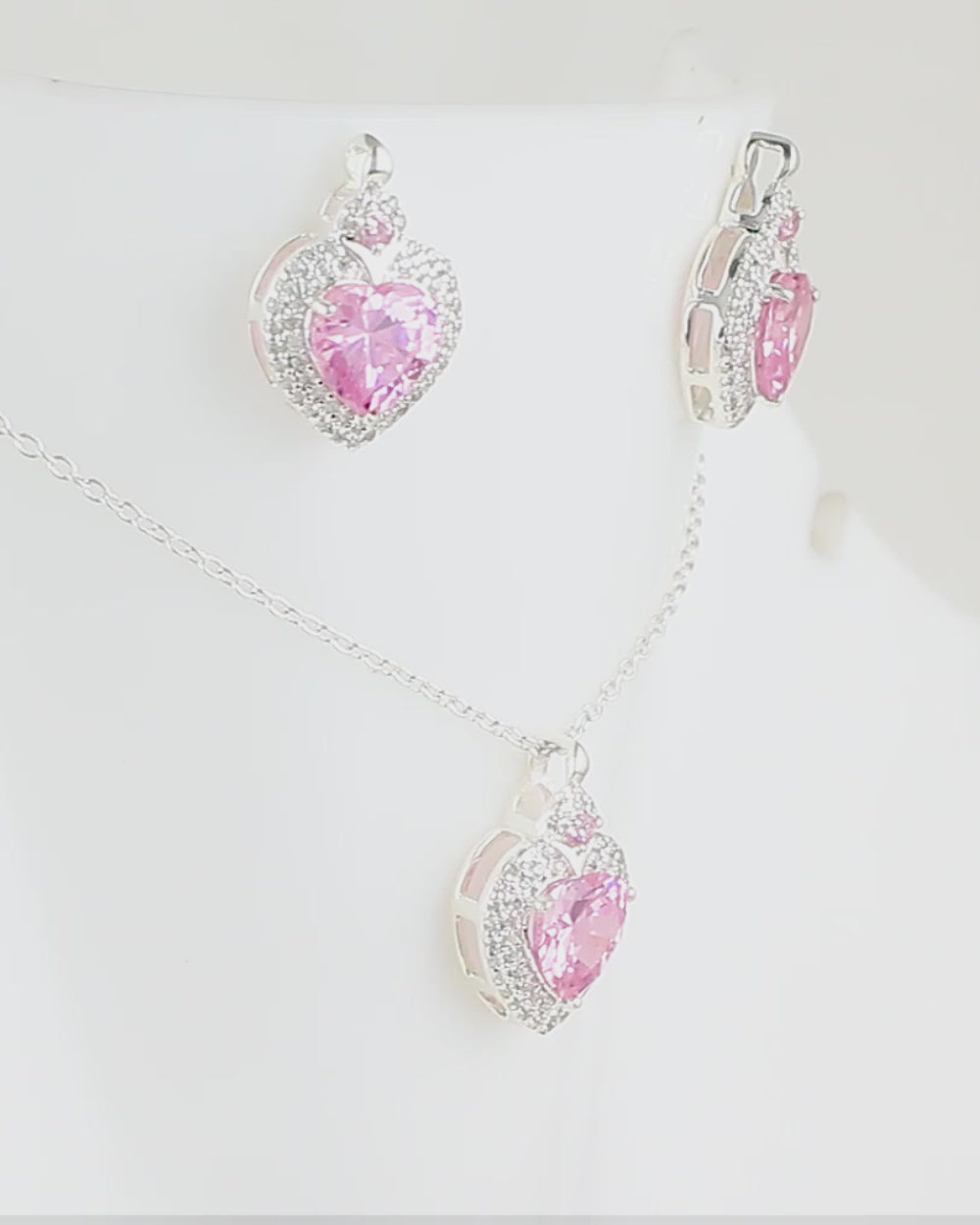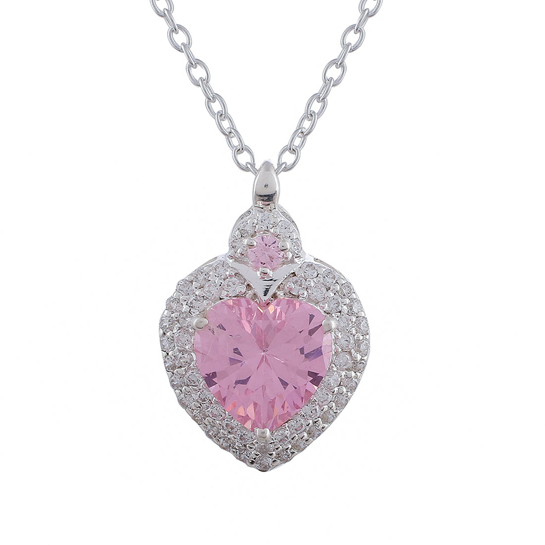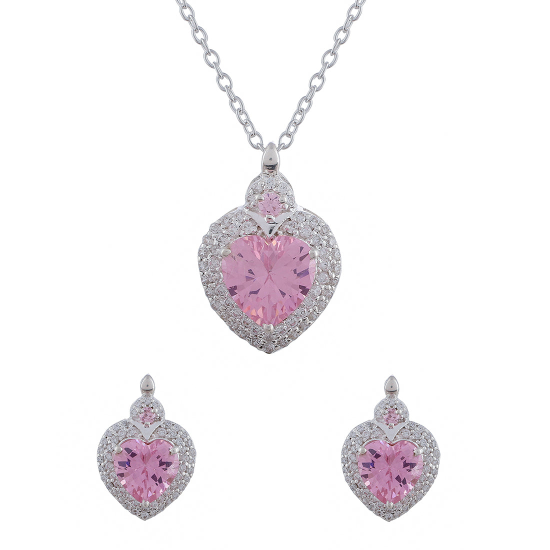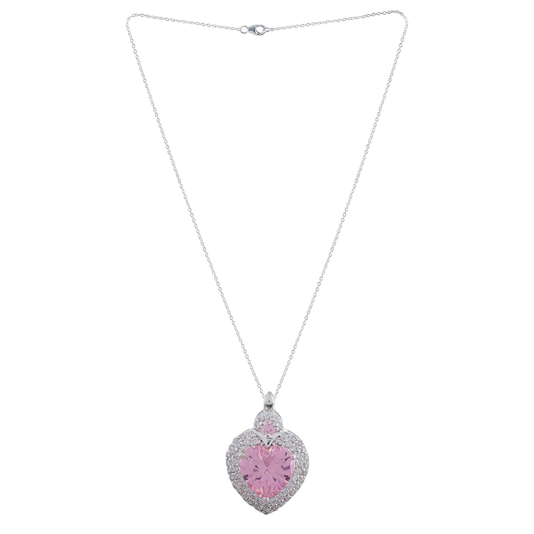 925 Sterling Silver Pendant Set Adorned with Sparkling Pink stones