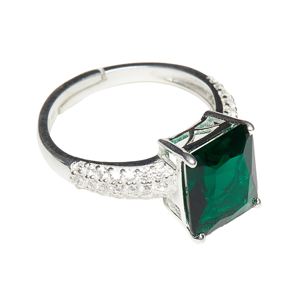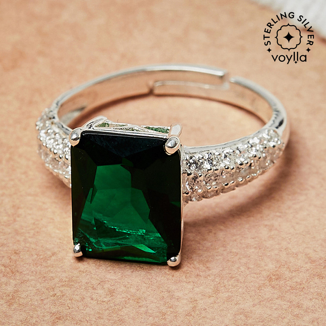 Add more grace to your feminine look through this green stone studded ring in silver plating. Let everyone appraise your sense of style through this exquisite ring made of 925 Sterling Silver.