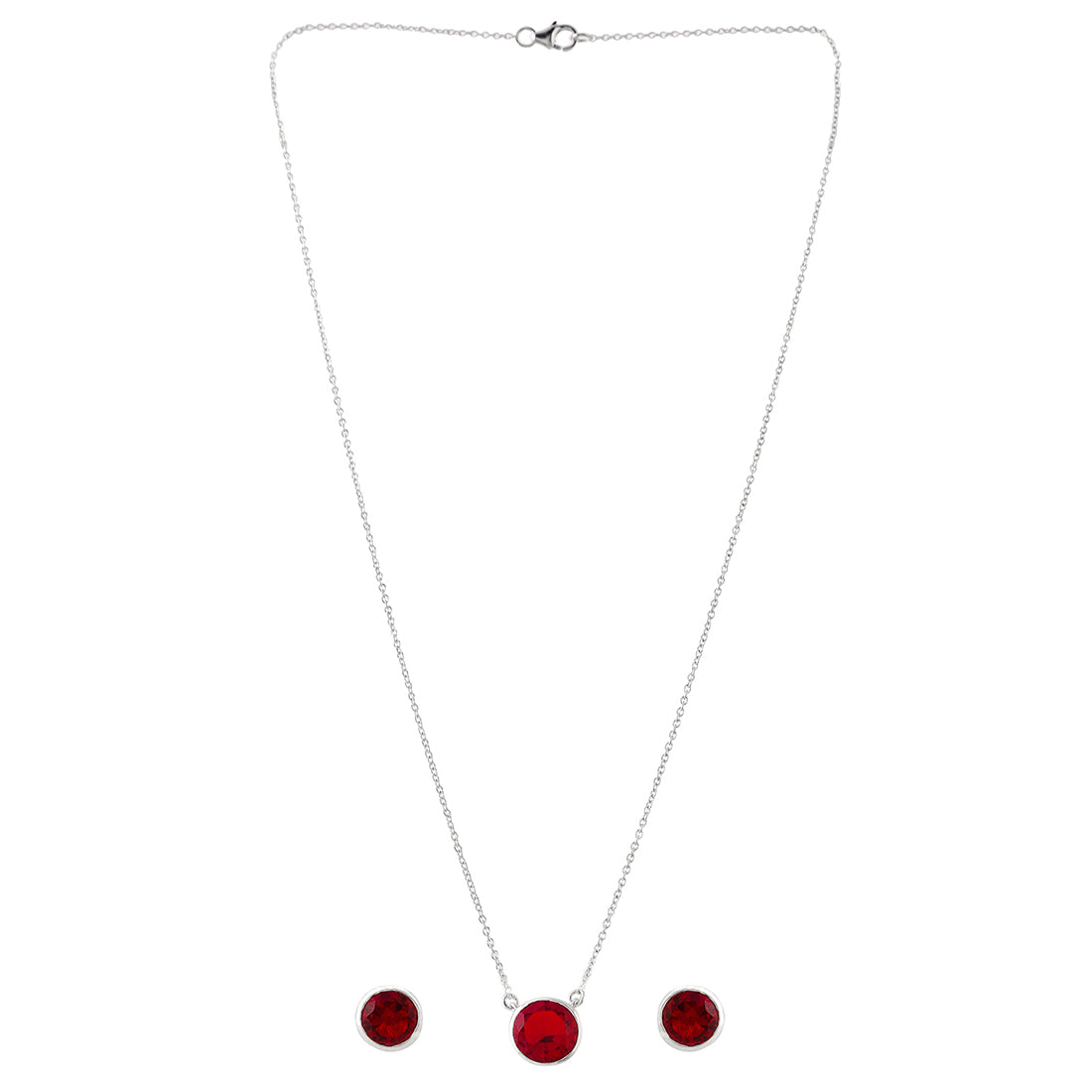 925 Sterling Silver Round Cut Red CZ Pendant Set