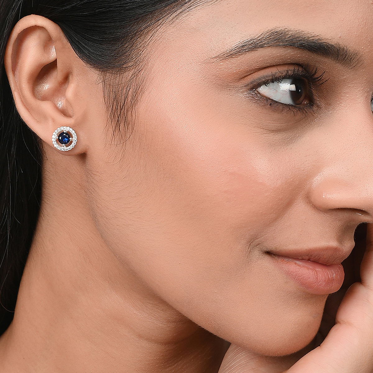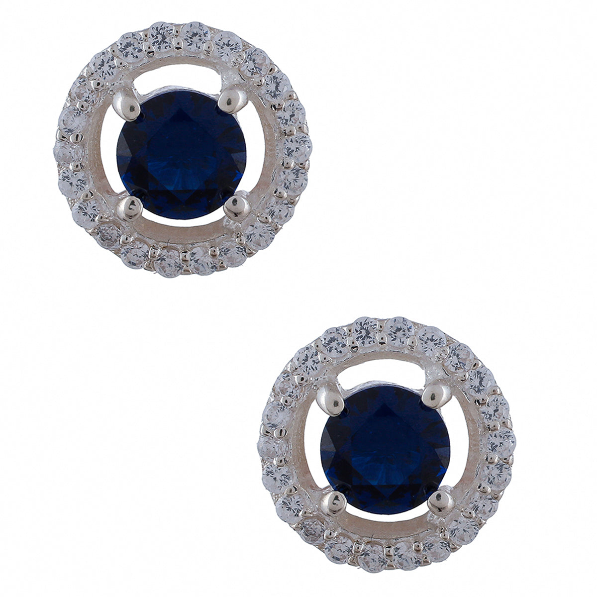 Gorgeous pair of stud earrings crafted from sterling silver with silver plating, studded with sparkling blue stone which adds to the eternalness of the jewelry. Add this stunning pair of jewelry in your collection today! Team it with your daily outfits.