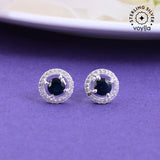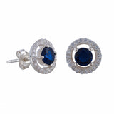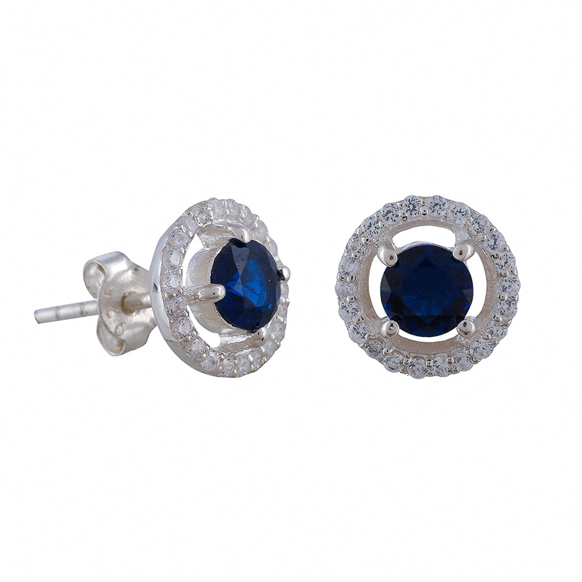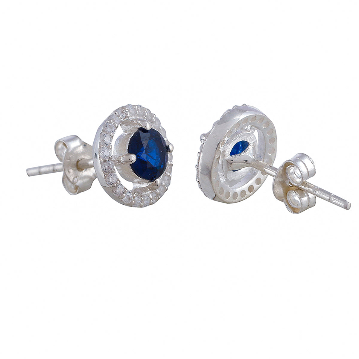 925 Sterling Silver Round Shaped Stud Earrings Made With Blue Stone