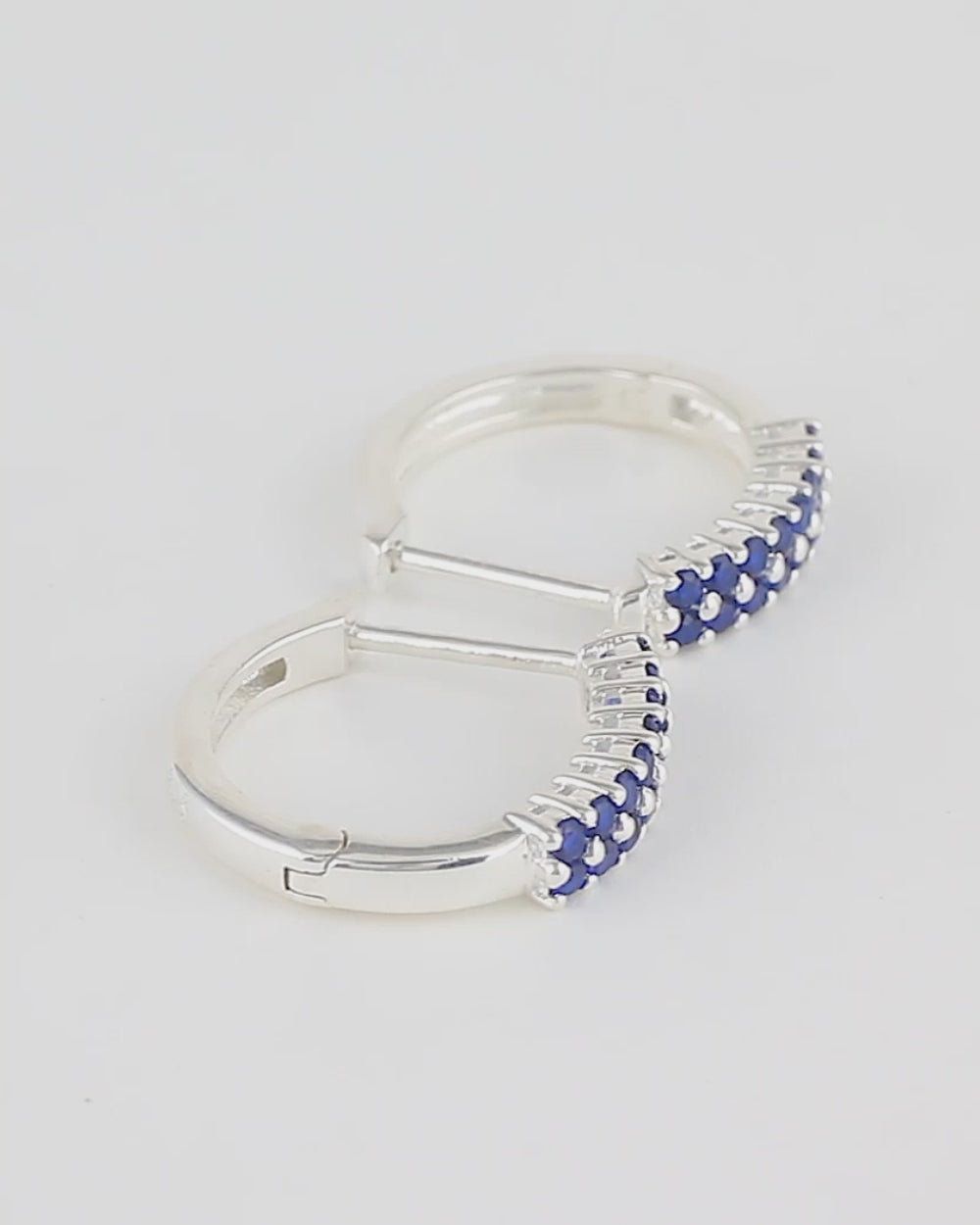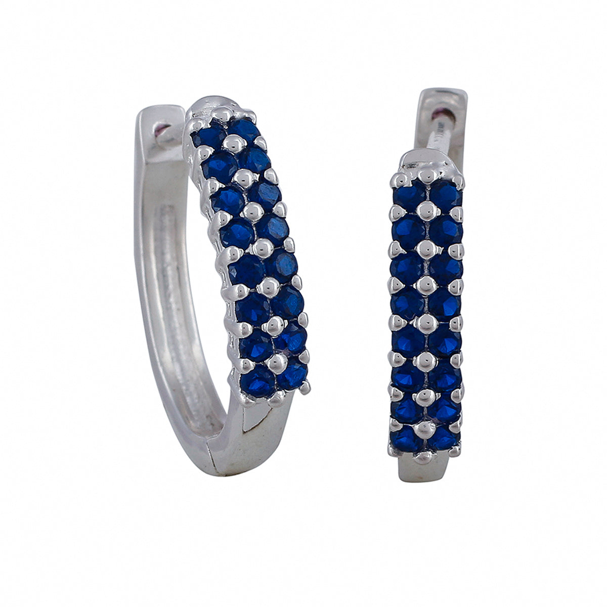 925 Sterling Silver Small Hoop Earring Studded With Blue Stone