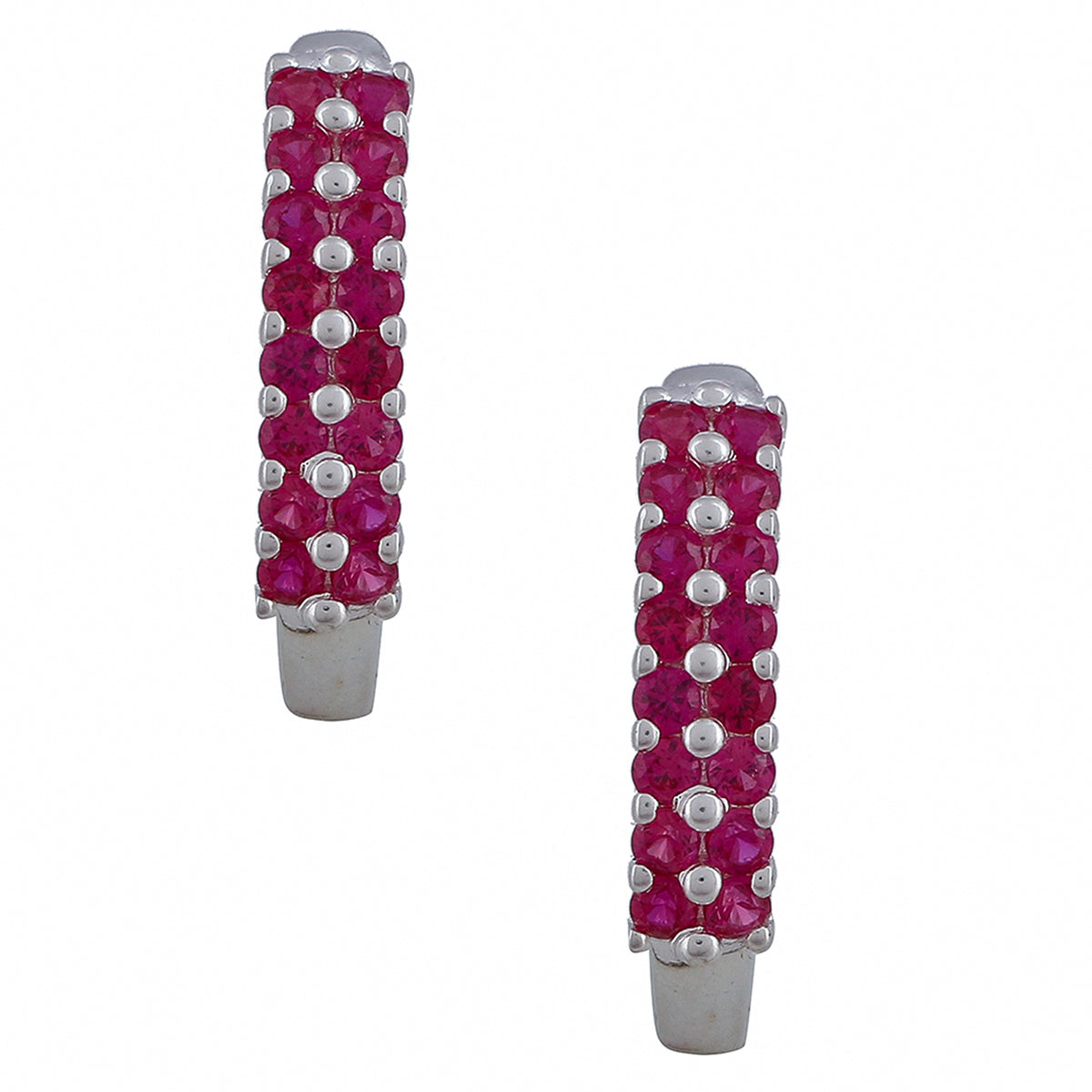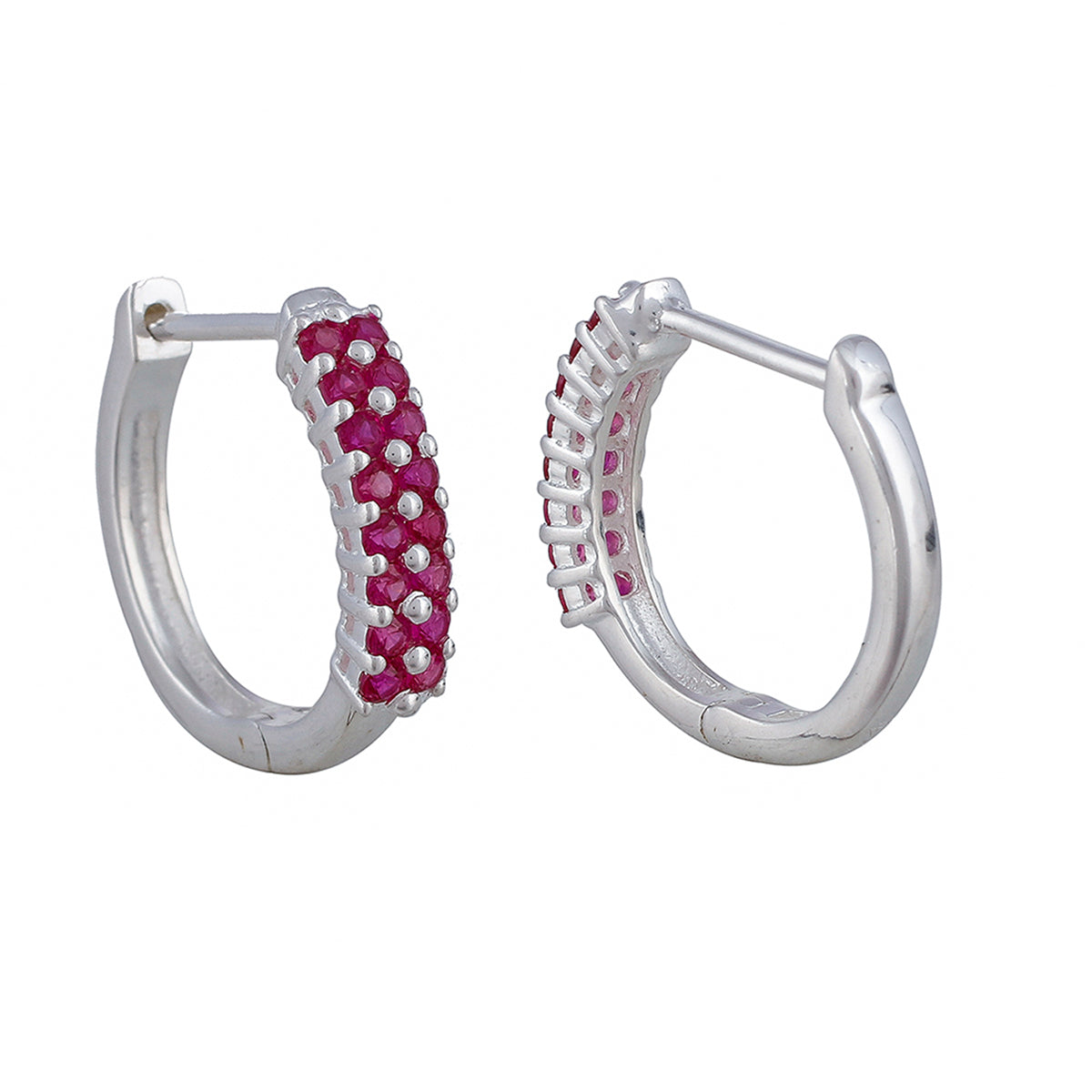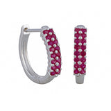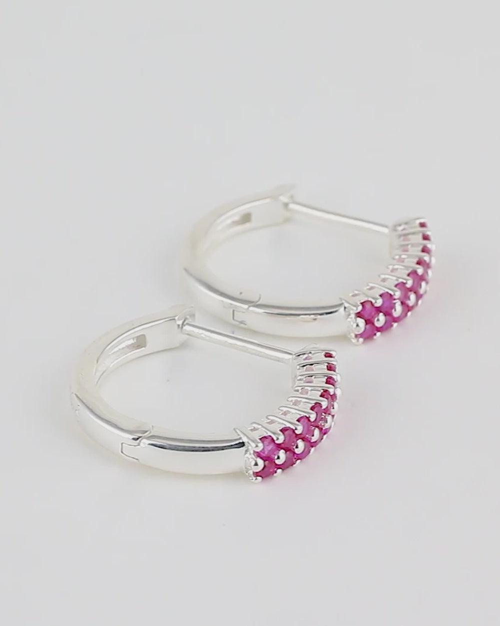 925 Sterling Silver Small Hoop Earring Studded With Pink Stone