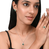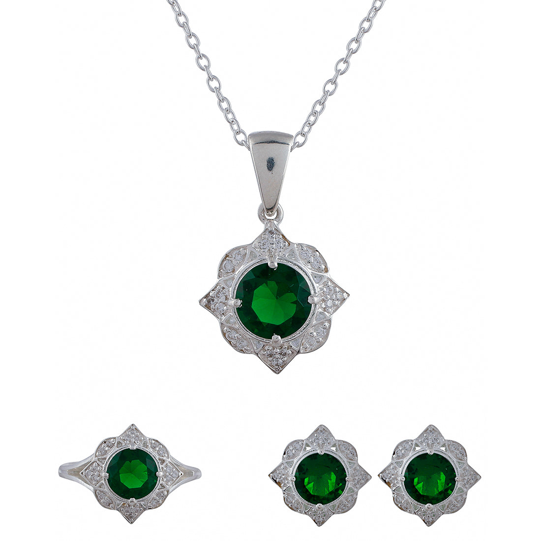 925 Sterling Silver Sparkling Box Set With Shimmering Green CZ gems For Women