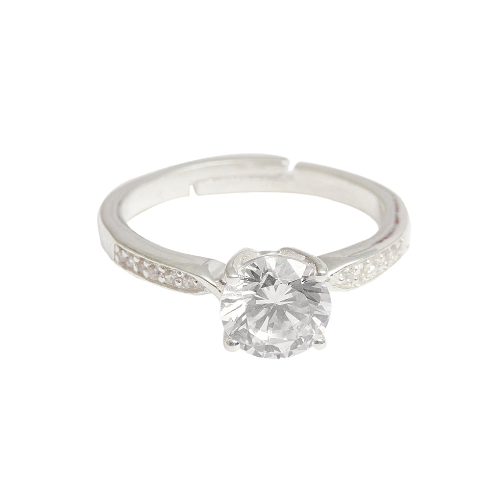 Add a touch of classic glamour to your look with this adjustable 925 sterling silver ring, which has been adorned with a teardrop cut CZ gemstone. Silver plating adds to the allure of this piece, which promises to be a comfortable wear at all times.