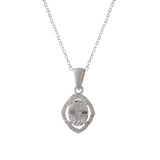 925 Sterling Silver White Oval Cut CZ Pendant Set