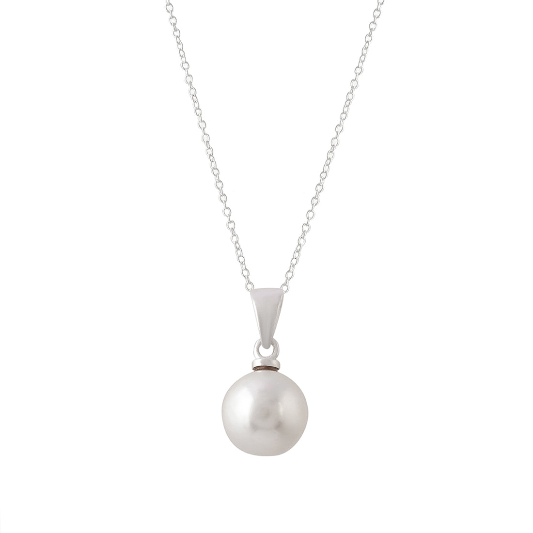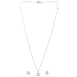 A charming white pearls pendant set, fashioned out of pure 925 sterling silver. The pendant and earrings have been given a white rhodium plating. Pair with any of your favourite outfits.