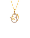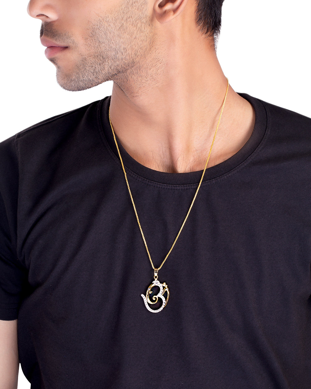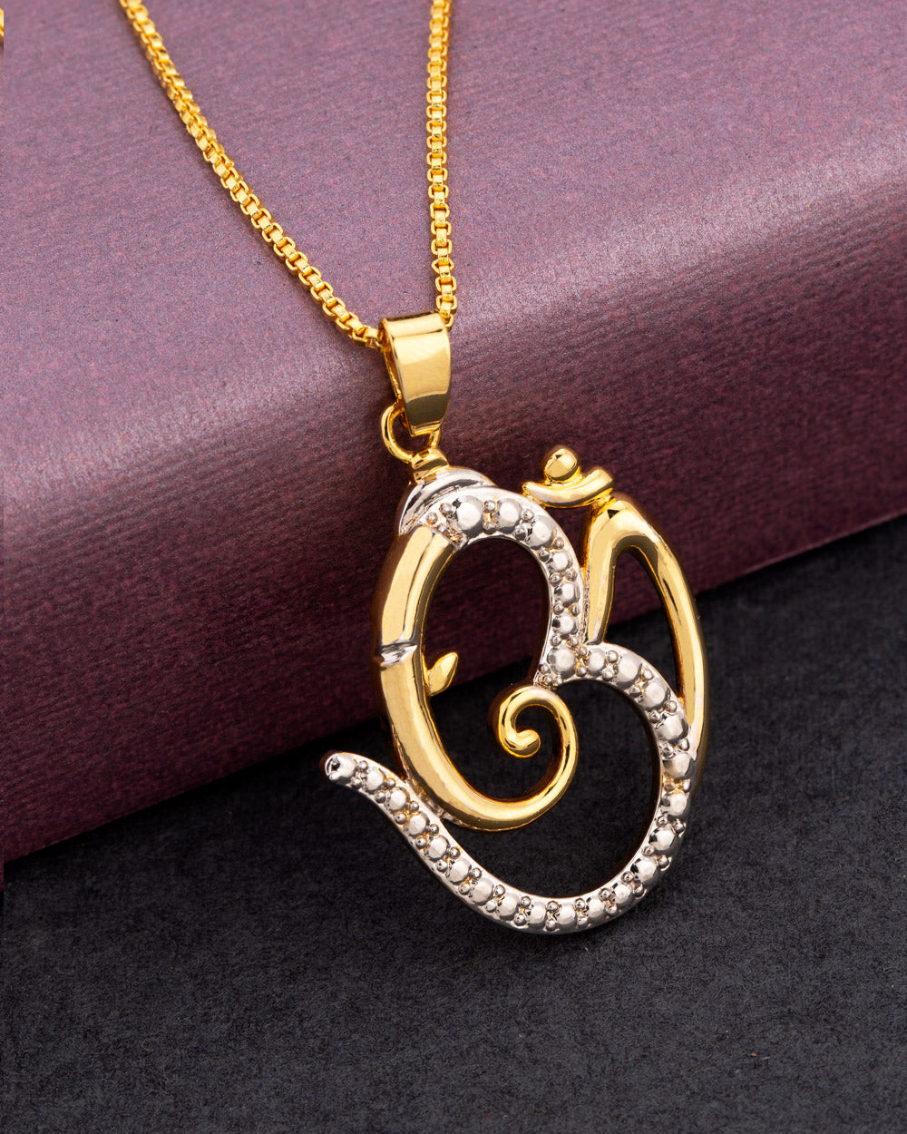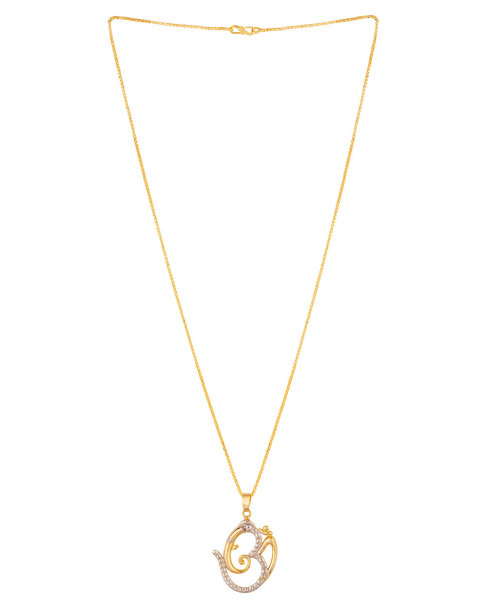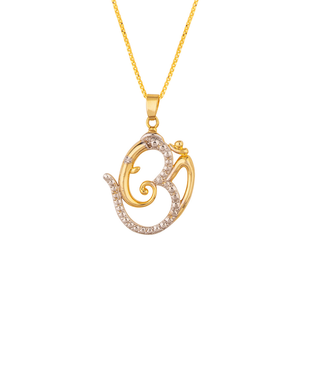 Brass OM inscription pendant with two tone plating. CZ gems embellished and a good match for formal ethnic looks.