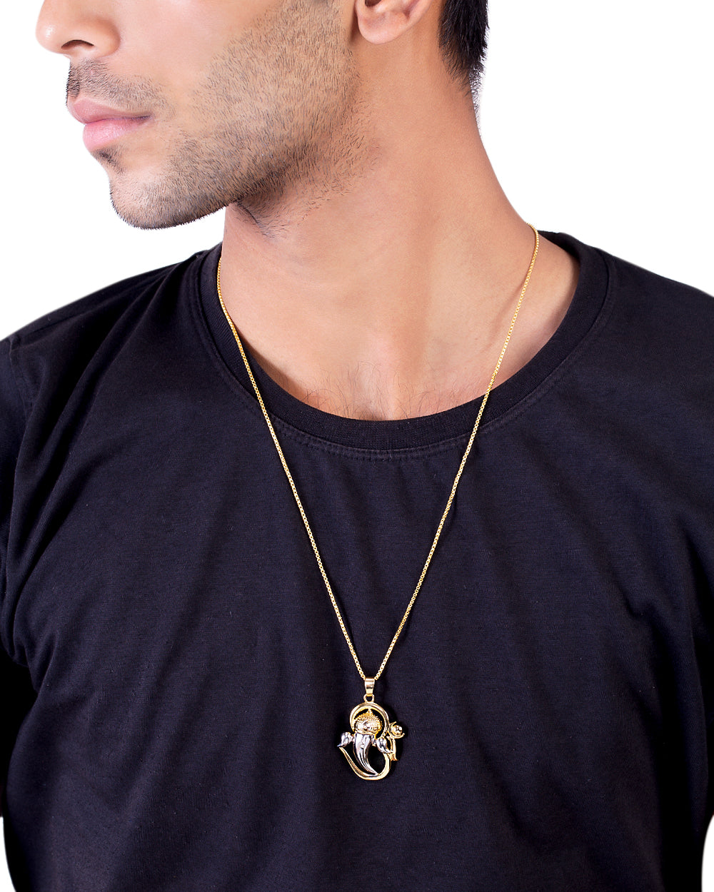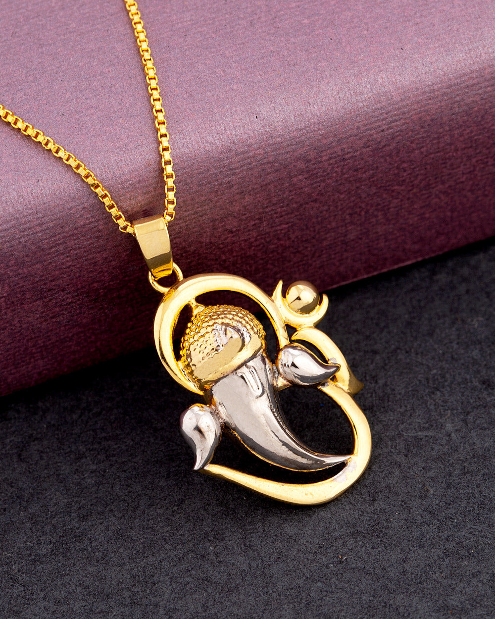 OM inscription brass pendant with two tone plated. Lightly embellished and good for formal looks.