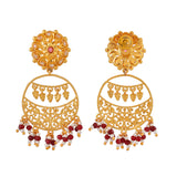 Abharan Filigree Design Red Stones and Pearls Drop Earrings