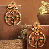 Abharan Floral Motif Teardrop Cut Green Stones and Pearls Drop Earrings