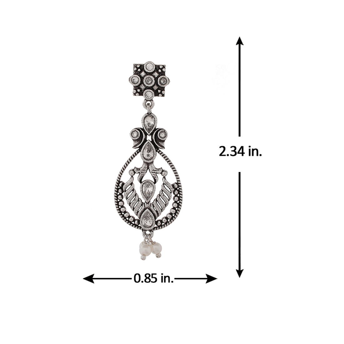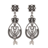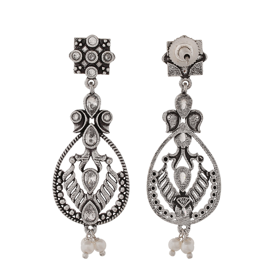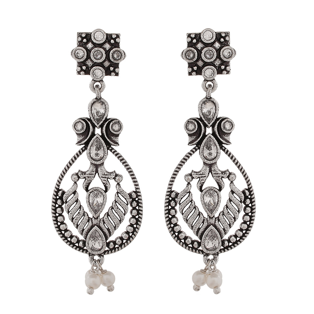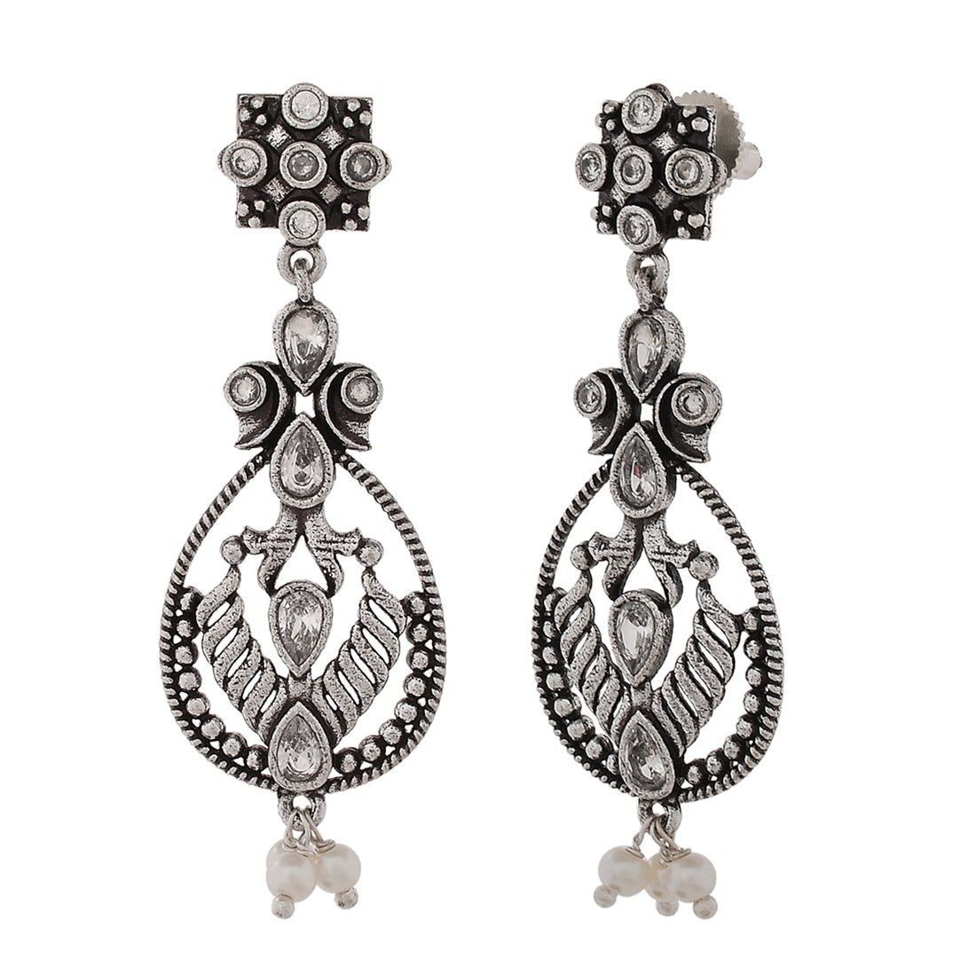 Abharan Oxidised Silver Plated White Pearls Drop Earrings