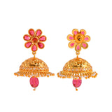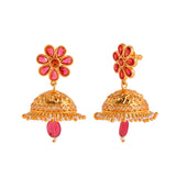 Abharan Red Stones and Pearls Floral Jhumka Earrings