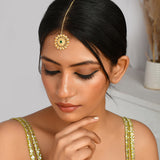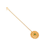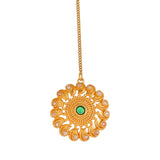 Abharan Yellow Gold Plated Round Cut Green Stone Ethnic Maang Tika