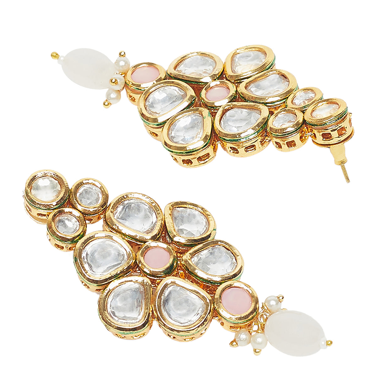 Kundan Adorned Teardrop Yellow Gold Plated Brass Jewellery Set