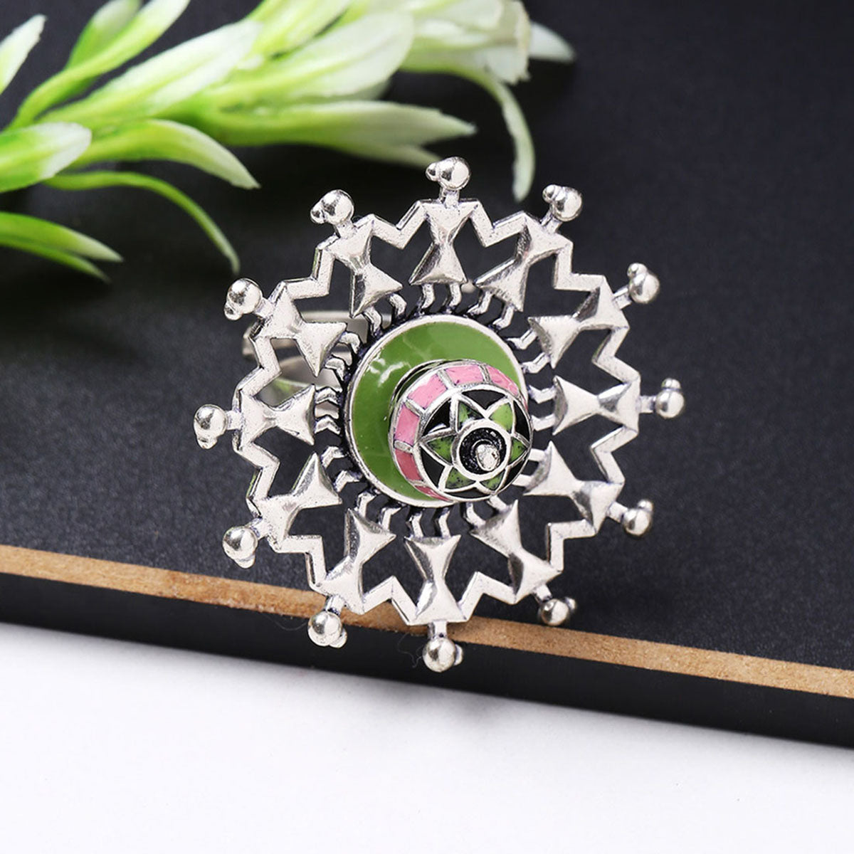Dome ring fashioned after the design of fidget toy. Made from brass and oxidised silver plated. Pair with party outfits.