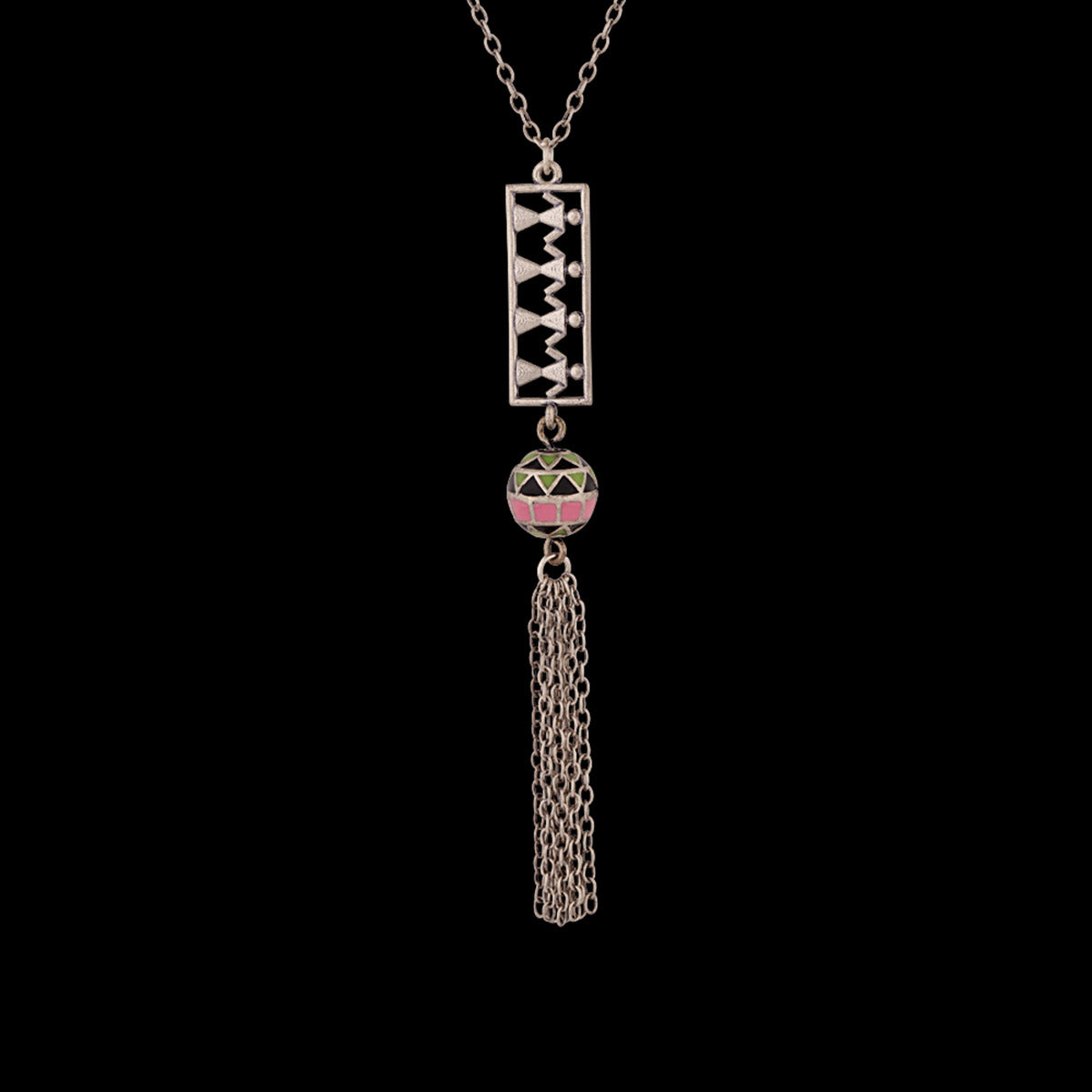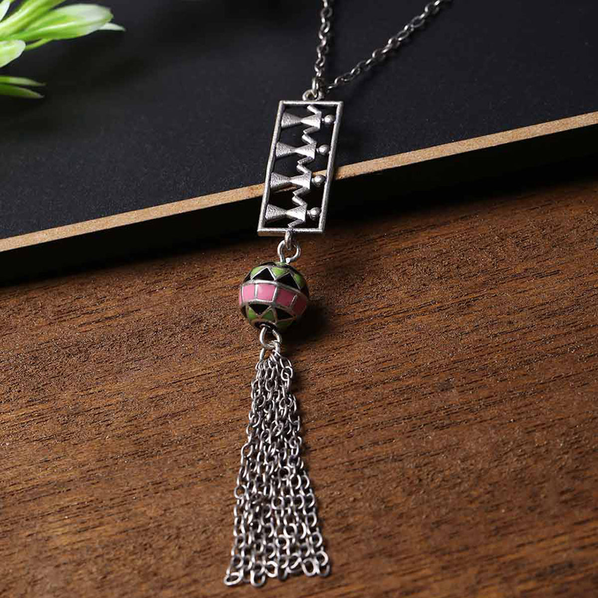 Oxidised silver plated brass pendant, inspired from traditional motifs found in Warli art paintings. Wear in a gold or silver rope chain.