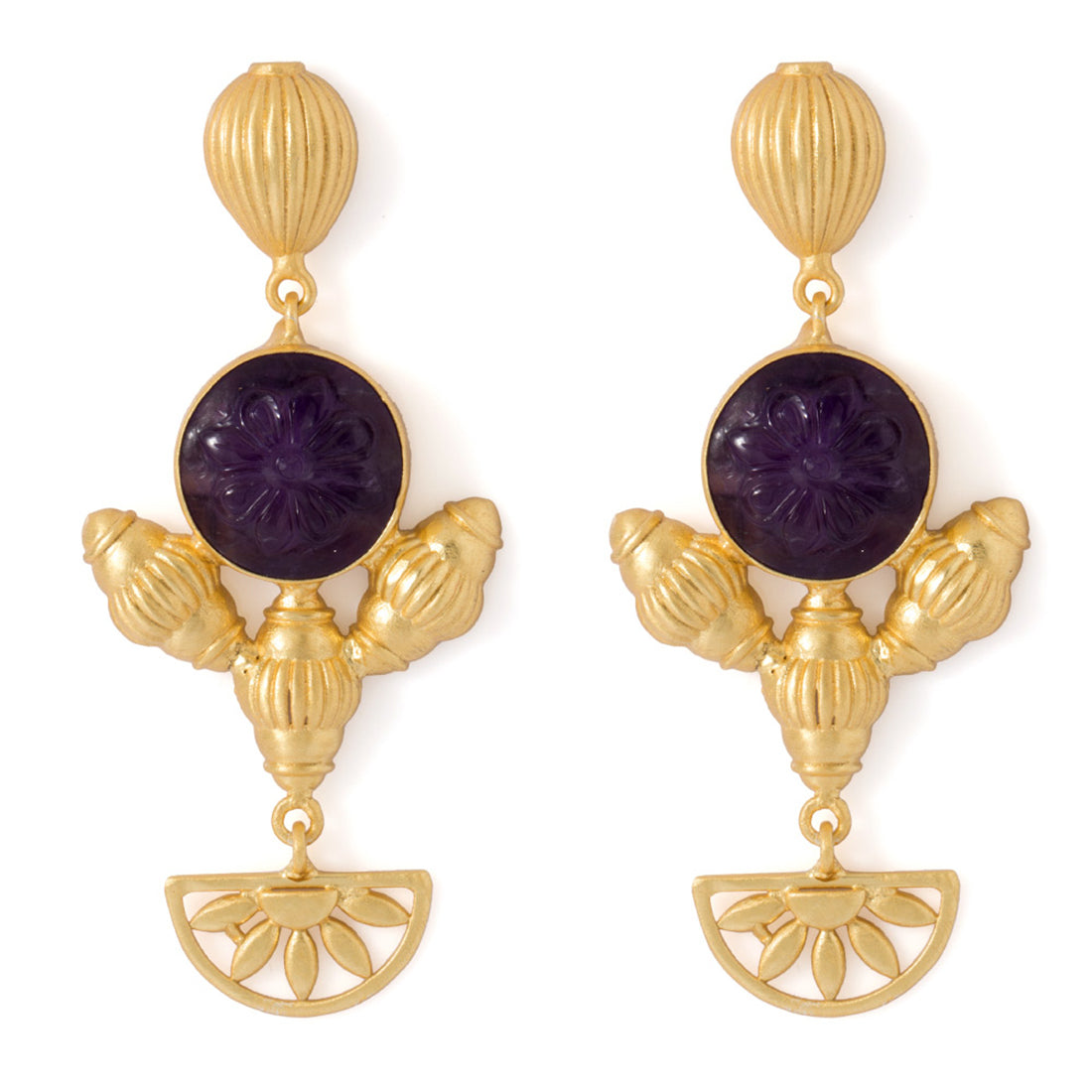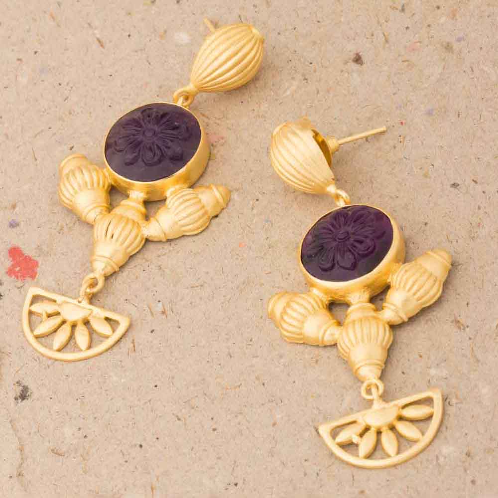 Look charming and graceful with this pair of stunning earrings that showcases elegance with beauty. Featuring adornment of brilliant purple stone, these gold tone earrings will surely let you shine like the brightest star at a party.
