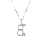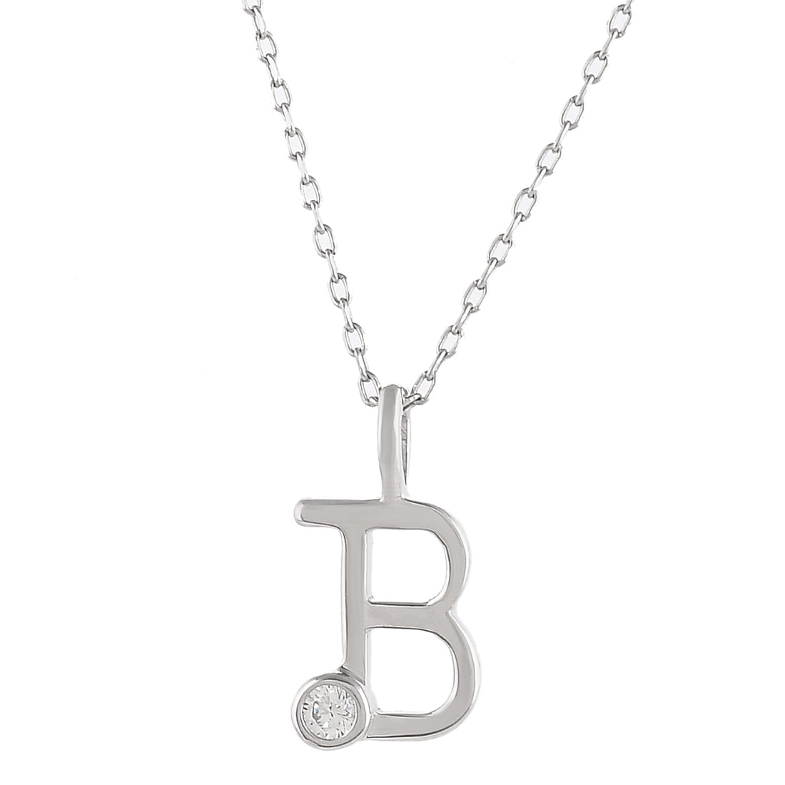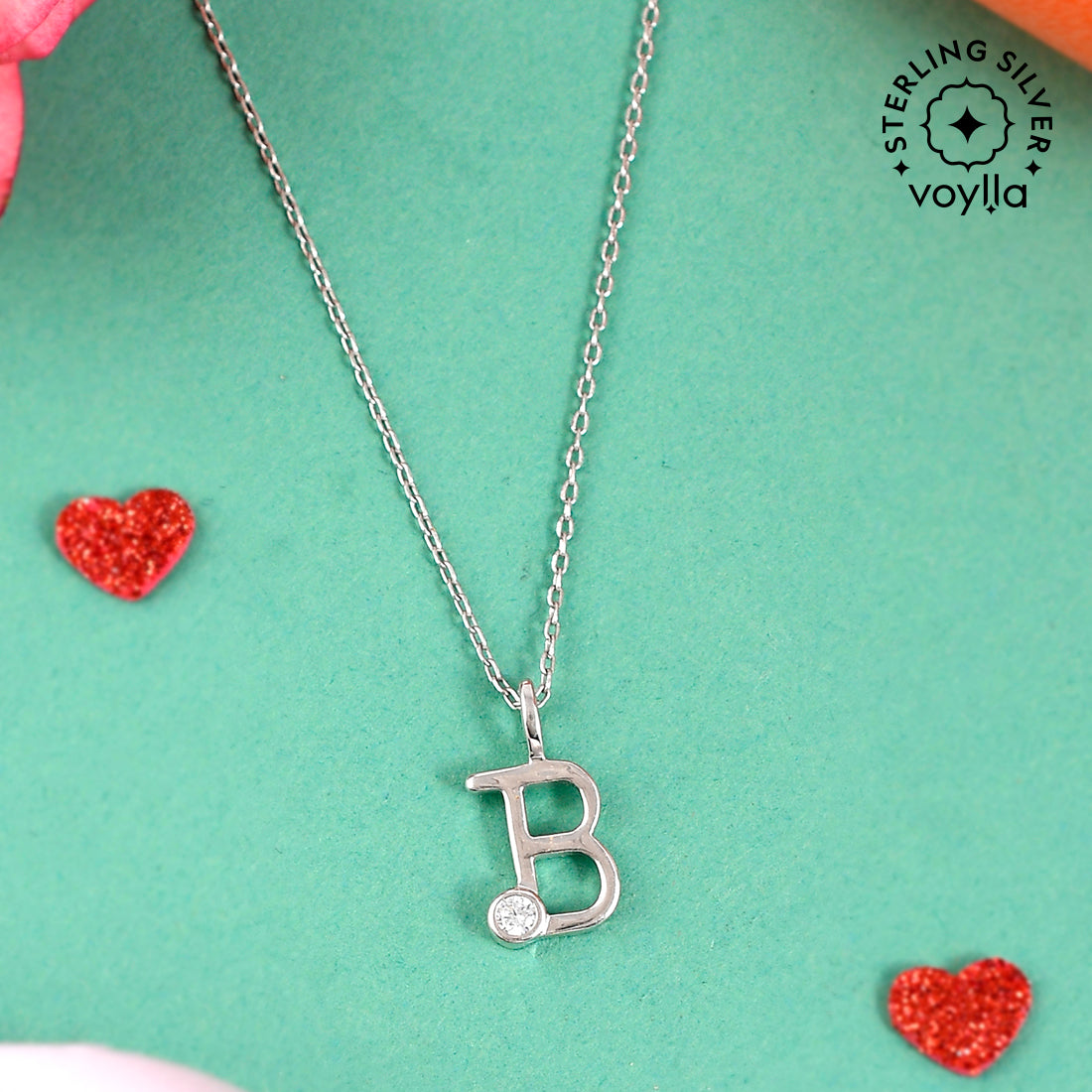 Minimalistic Alphabet B pendant with silver chains,studded with cubic zircons.Crafted in 925 Silver with a High Polish Finish .