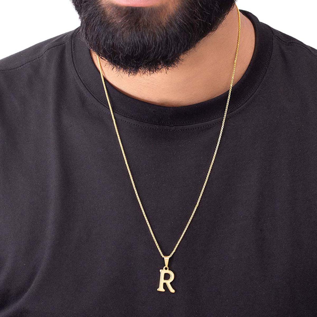 R alphabet pendant made from stainless steel and yellow gold plated. Wear with everyday outfits. To make your accessories last longer avoid harsh chemicals and moisture. Keep dry, clean with dry cloth and wear with panache. "India’s largest fashion jewelry brand DARE, comes from the House of Voylla as a limited edition of handcrafted accessories for the modern Indian men. "