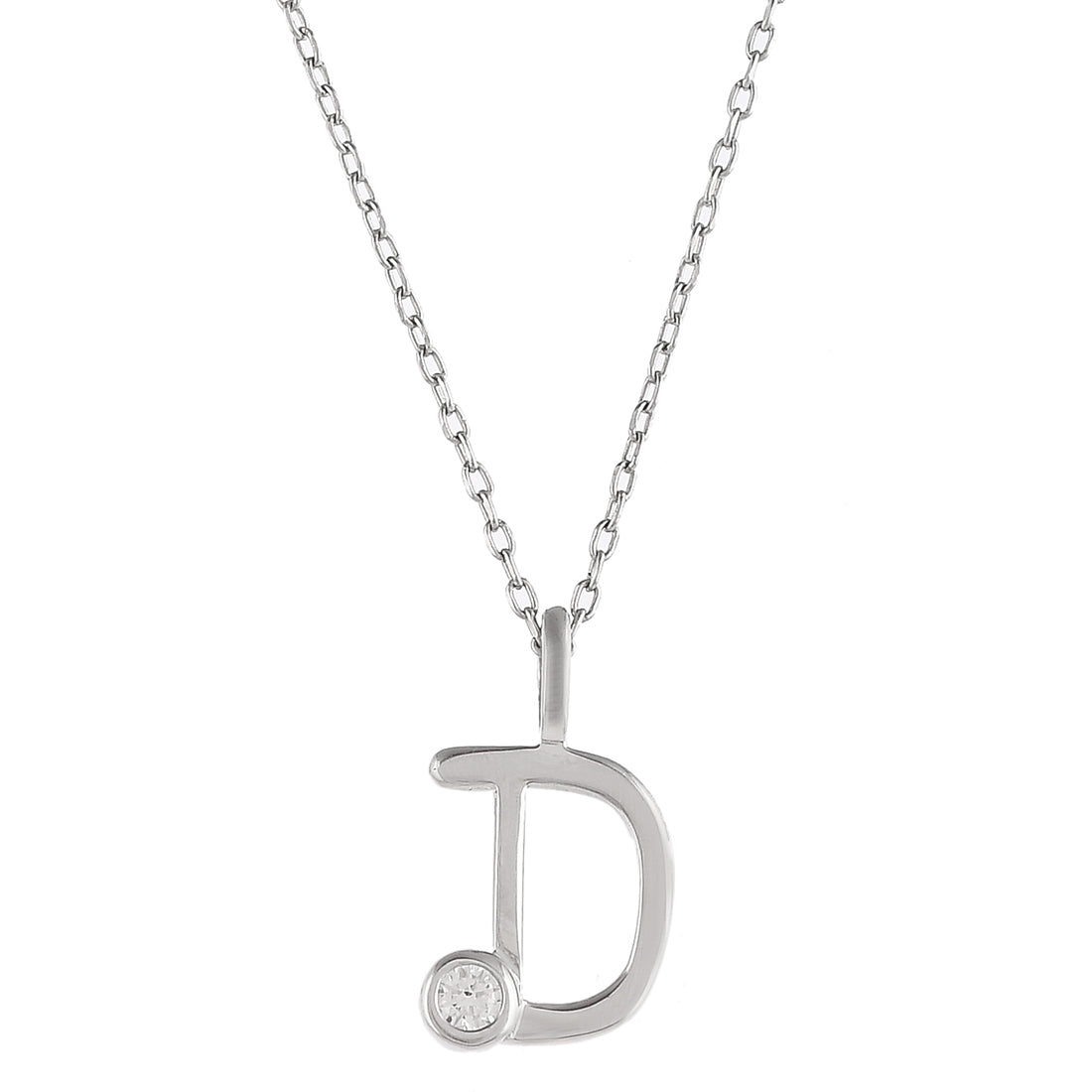 Minimalistic Alphabet D pendant with silver chains,studded with cubic zircons.Crafted in 925 Silver with a High Polish Finish .