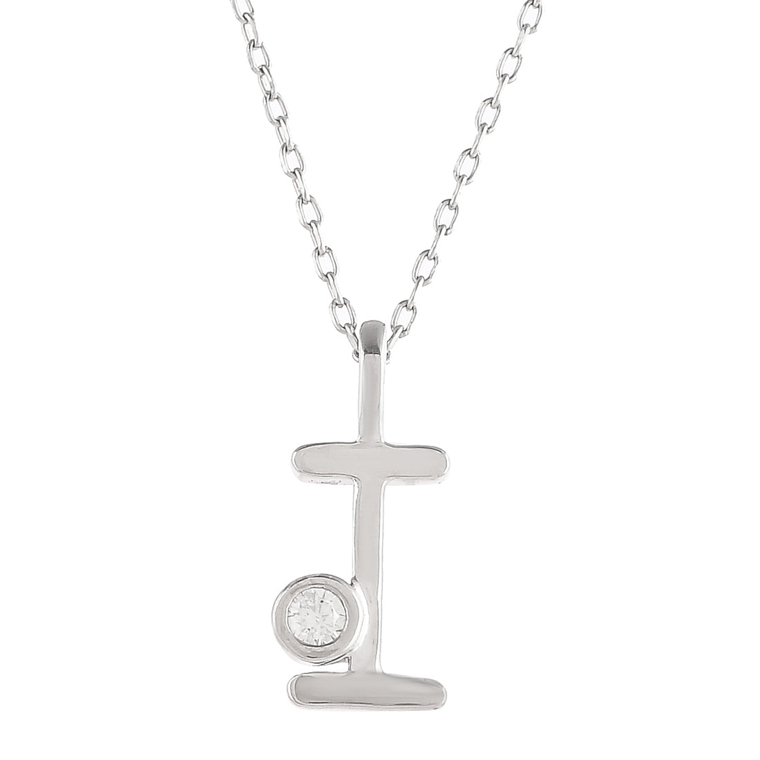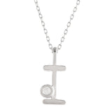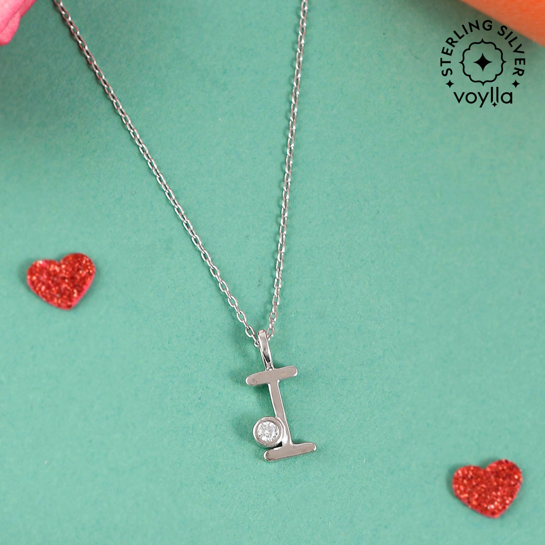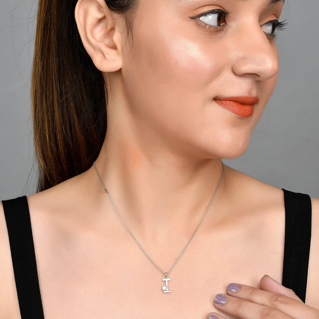 Minimalistic Alphabet I pendant with silver chains,studded with cubic zircons.Crafted in 925 Silver with a High Polish Finish .