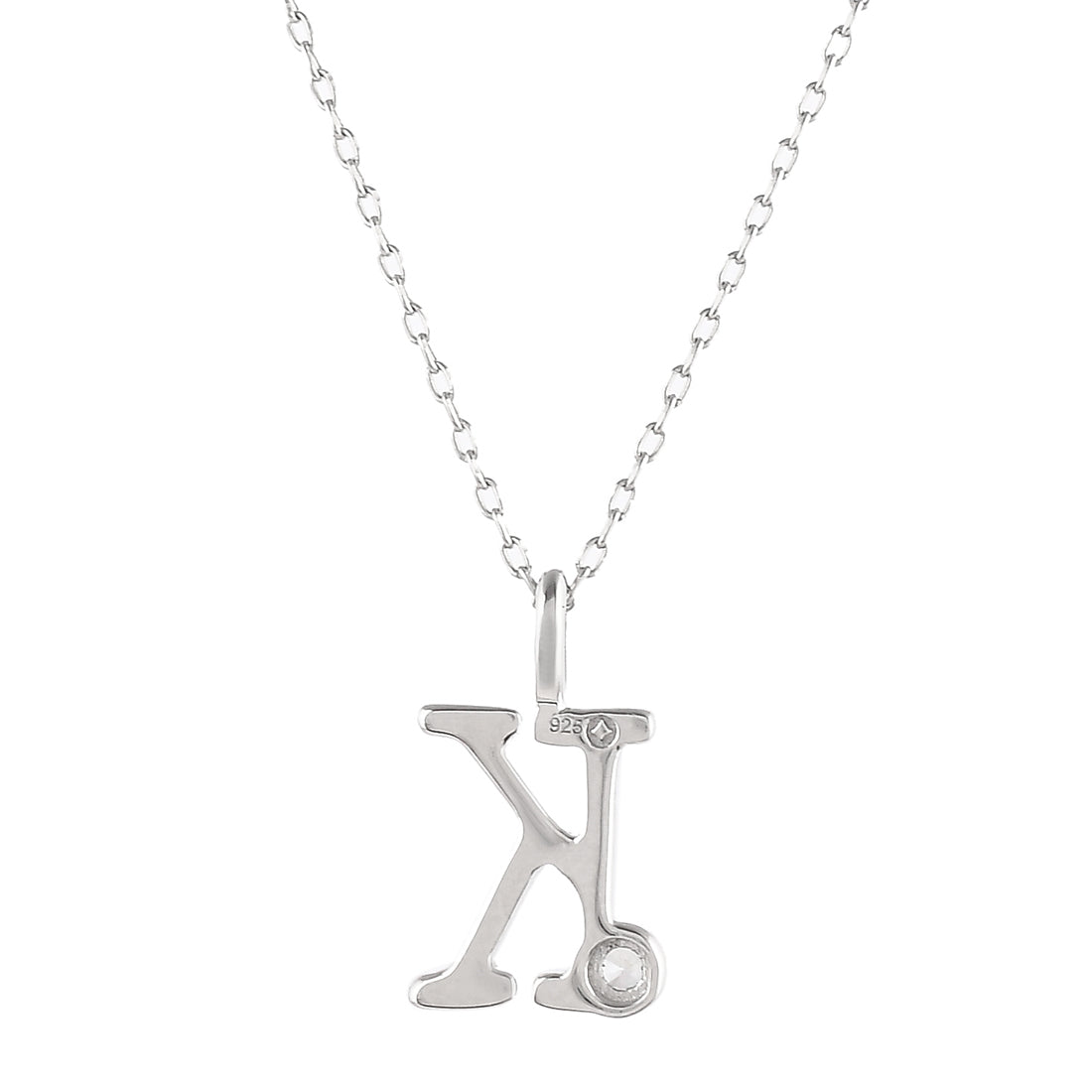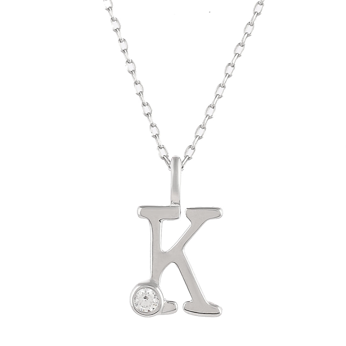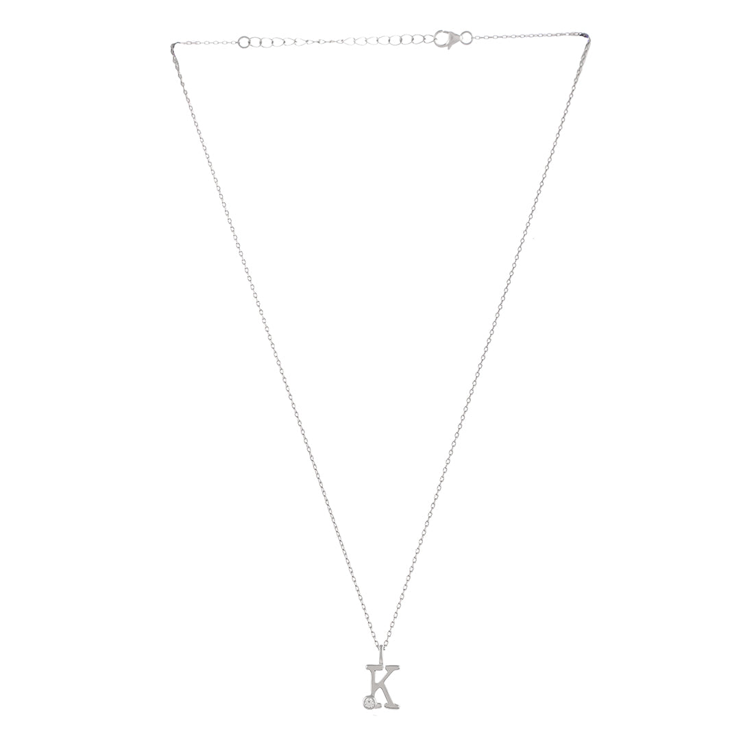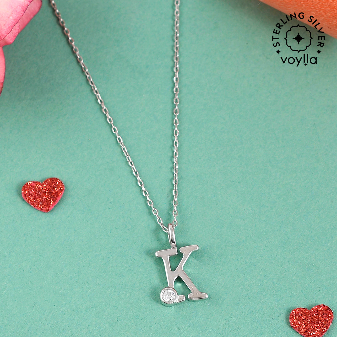 Minimalistic Alphabet K pendant with silver chains,studded with cubic zircons.Crafted in 925 Silver with a High Polish Finish .
